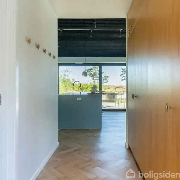 BEACH HOUSE PÅ VERDENS BEDSTE BALKA STRAND Alle drømmer om et sommerhus ved Balka Strand – men sjældent kommer muligheden. Og næsten aldrig et beach house som dette på selveste Frederiksvej. Her er du i første række til Bornholms mest ikoniske strand, med udsigt til havet, men samtidig tilbagetrukket og privat i din egen lille lyng- og nåleskov. Sommerhuset er nybygget i 2023, men besidder en sjælden sjæl og underspillet luksus. Materialernes vitalitet og farvernes betydning er nænsomt afstemt, så arkitektur og natur smelter sammen. Hver løsning er gennemtænkt – skabt til at invitere omgivelserne ind og skabe ro. Al aptering er optimeret, alt der kan indbygges er indbygget – og intet sted er der skåret hjørner. Inde finder du tre soveværelser, en hems, to stilrene badeværelser og gulvvarme overalt – et moderne beach house, der fungerer året rundt. Husets hjerte er køkkenalrummet med indbygget siddeplads og store terrassedøre ud til træterrassen, hvor skov, lys og havudsigt flyder frit ind i rummene. Ved siden af indbyder stuen til fordybelse, hvor man i glimt ser havet gennem træernes silhouetter, mens bølgerne danner en rolig baggrund. Udenfor breder træterrassen sig som en naturlig forlængelse af skovbunden, mens facaden åbner sig mod havet. Her er indbygget overdækket terrasse, udebrus og et hyggeligt ældre skur. En lille lyngsti leder på få sekunder til Bilka strands bløde marhalm, lune gryder og det azurblå vand. Balka er børnevenlig og ikonisk – et sted, hvor man kan vandre langs stranden til Snogebæk, hvor specialbutikker, caféer og sommerstemning møder vinterens ro og eftertænksomhed. At eje et beach house her er mere end et privilegium – det er en invitation til et liv i harmoni med Bornholms særlige lys, natur og ro. Et sted, hvor enkelhed møder elegance, og hvor selv de mindste øjeblikke bliver betydningsfulde.