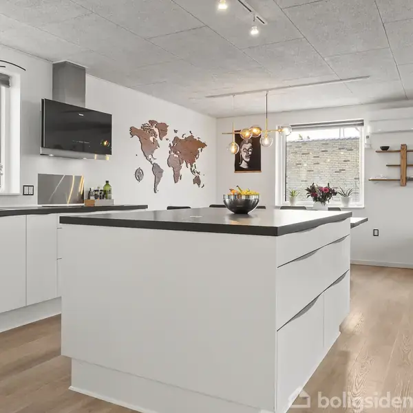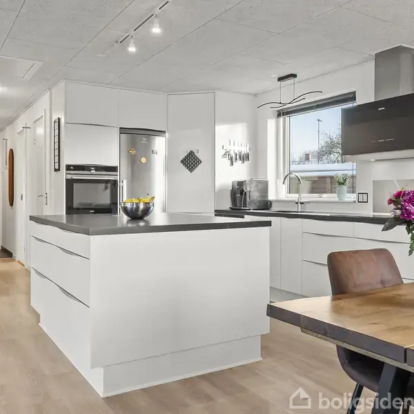 På en lukket stikvej centralt i Holstebro finder I denne gennemførte og totalrenoverede 1-plans villa, hvor der er tænkt på både komfort, funktionalitet og æstetik. Boligen fremstår indflytningsklar og er renoveret med gulvvarme i hele huset, nyt tag og nye vinduer fra 2019 samt en flot hvid facade, der giver et moderne og indbydende helhedsindtryk.I bydes velkommen i entréen, som fungerer som fordelingsgang til hjemmets tre gode værelser og det lyse badeværelse. For enden åbner boligen sig op t