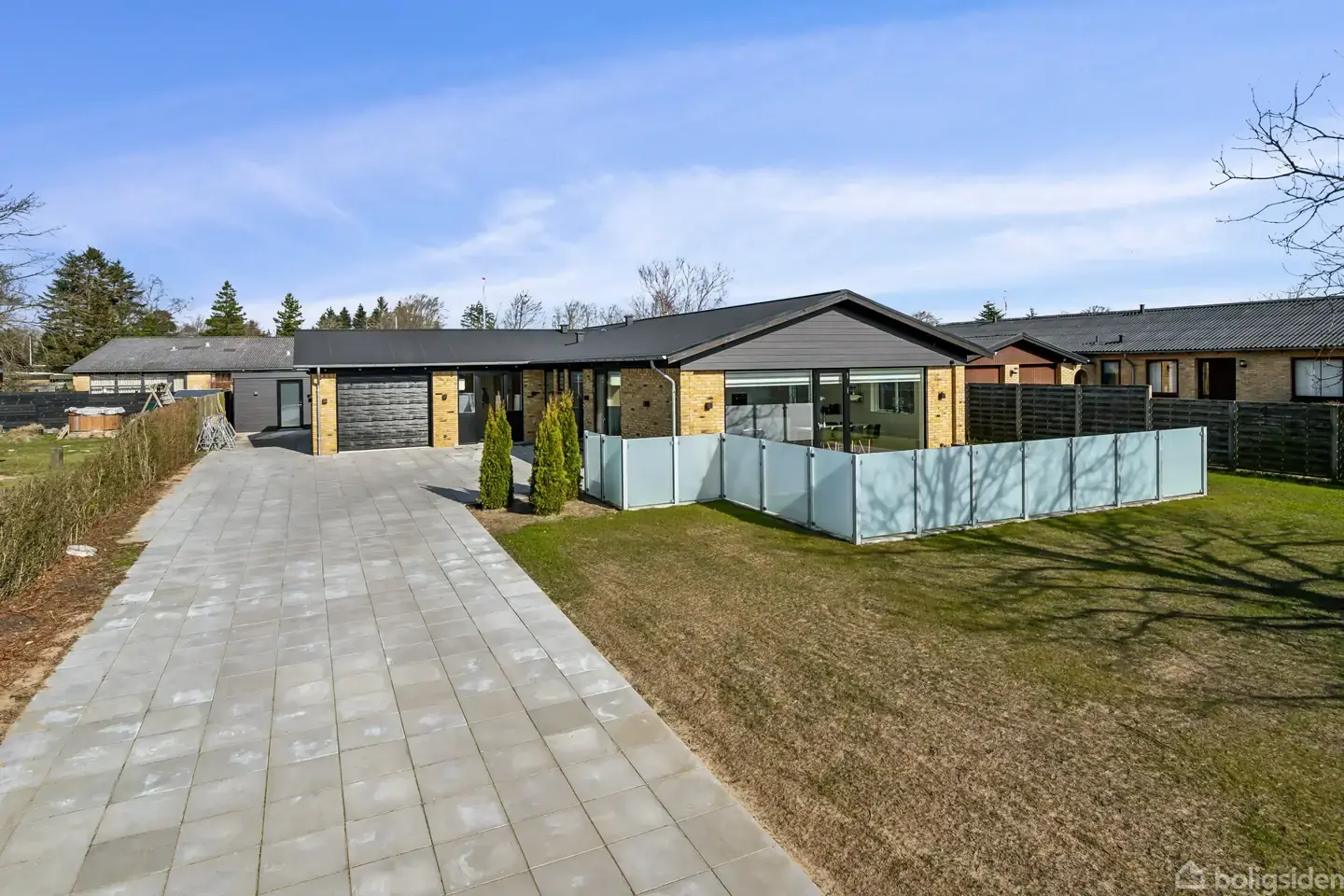 På en ugeneret grund på hele 930 m² ligger denne moderne og indflytningsklare villa på 157 m² – et hjem, der forener klassisk arkitektur med nutidens komfort. Her får du fire værelser, to badeværelser, integreret garage og en markant terrasse, hvor udelivet får sin naturlige plads. Fra det øjeblik man ankommer, fornemmer man den velholdte og gennemtænkte helhed, der kendetegner ejendommen. Huset er opført i 1964, men blev totalrenoveret i 2023-2024, så det i dag fremstår som et fuldkomment opda