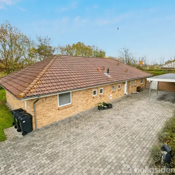 I et fredeligt og børnevenligt kvarter i Glattrup – med kort afstand til både skole, indkøb, grønne områder og daginstitution – finder I denne rummelige etplansvilla på hele 157 m². Huset er opført i 1991 og er siden udvidet med en funktionel værelsesafdeling og ekstra badeværelse, hvilket gør boligen særligt velegnet til børnefamilier. Der er ikke mere end 200 meter til den nærmeste børnehave, og til skole kan børnene cykle trygt ad cykelsti hele vejen. Samtidig er der netop lagt fjernvarme ind i ejendommen. Indretningen rummer en stor og lys stue i delvis åben forbindelse med alrum og køkken, som har udgang til den sydvestvendte terrasse. Herfra kan I nyde udsigten til den frodige have, der er anlagt med masser af grøn beplantning og flere solkroge. I alt får I fire gode værelser, to badeværelser samt bryggers – alt sammen praktisk og funktionelt fordelt uden spildplads. Udenfor venter en skøn have med god plads til leg, afslapning og udeliv. Haven er omkranset af hæk og beplantning, som giver masser af privatliv, og I får flere hyggelige terrasser, hvor solen kan nydes hele dagen. Den murede carport med redskabsrum, på i alt 47 m², sikrer både opbevaring og god plads til bilen. Grunden er på 989 m², og der er gode parkeringsforhold med en pæn og bred indkørsel. Alt i alt en meget indbydende bolig med en tryg beliggenhed og en god planløsning – perfekt til jer, der ønsker at bo tæt på det hele og alligevel i rolige omgivelser.