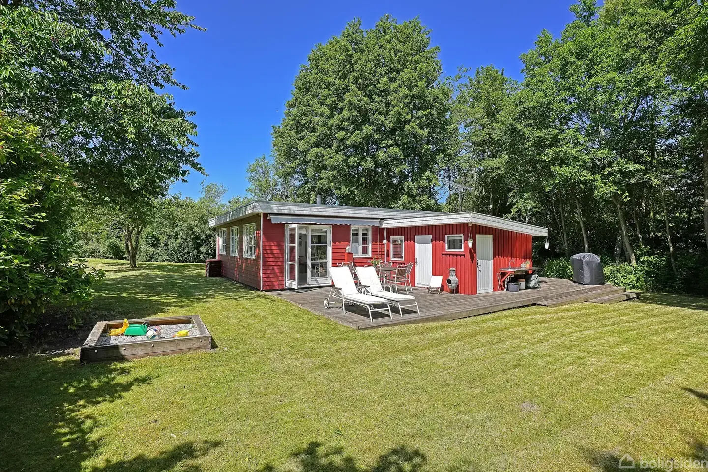 Lyst og indbydende helårsanvendeligt sommerhus i børnevenligt område nær strand – OdsherredDrømmer du om fred, komfort og strandliv? Så er dette charmerende sommerhus midt i Odsherredsskønne sommerland lige noget for dig.Huset fremstår lyst og imødekommende med en gennemtænkt planløsning og moderne komfort –herunder vandbåren gulvvarme i hele huset, som sammen med varmepumpen, sikrer en behageligtemperatur året rundt. Grunden er stor og velafskærmet, perfekt til leg og afslapning i fredelige omg