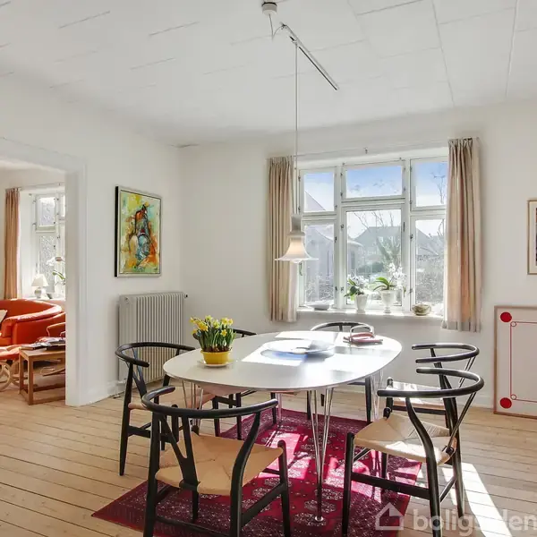 Nybolig byder her velkommen til en fin ejerlejlighed med central beliggenhed ganske nær centrum med kort afstand til byens sygehus og uddannelsesinstitutioner samt til indkøb og børnepasning.Ejerlejligheden er en villalejlighed beliggende i stueplan i en solid og præsentabel rødstensvilla fra 1931 som rummer 2 lejligheder i hhv. stueplan og på 1. salen.Her er der plads til aktive mennesker - i kælderen er der nu vinkælder, værksted/cykler, opmagasinering og grej til to kajakker, der ligger i gar