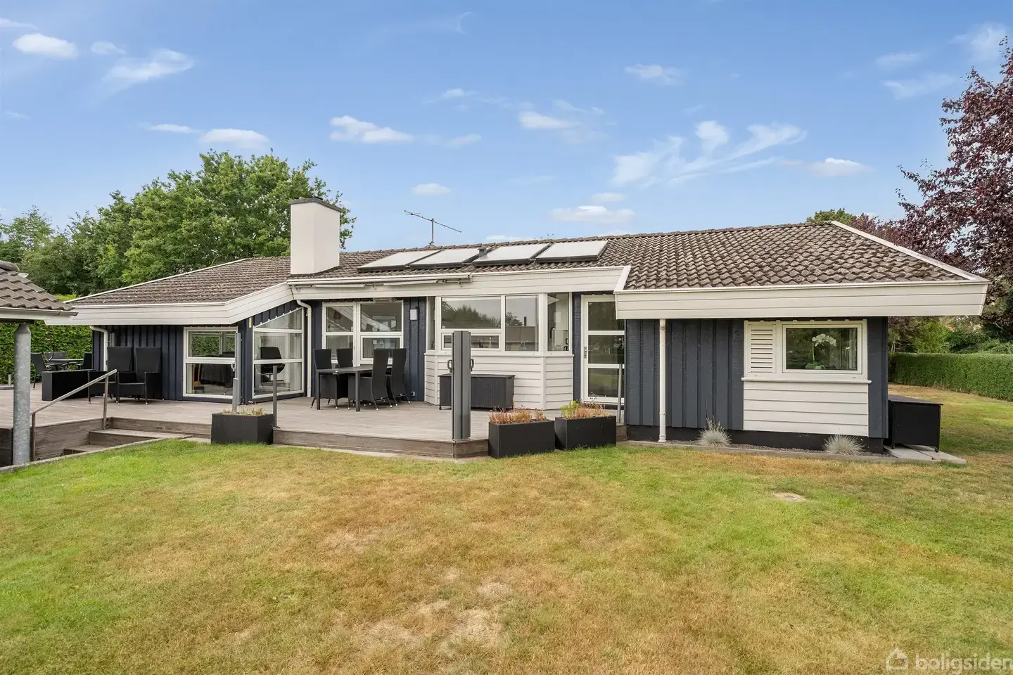 I Høll finder du dette rummelige sommerhus, der byder på alt, hvad man kan ønske sig til både privat brug og udlejning. Sommerhuset er indrettet med fokus på komfort, hygge og gode oplevelser – uanset årstid.Indenfor mødes du af et lyst og indbydende køkken/alrum i åben forbindelse med stuen. Her er god plads til samvær, og brændeovnen sørger for ekstra hygge i de kølige måneder. Fra opholdsrummene er der direkte udgang til flere terrasser, så udelivet nemt kan nydes.Boligen rummer tre soveværel