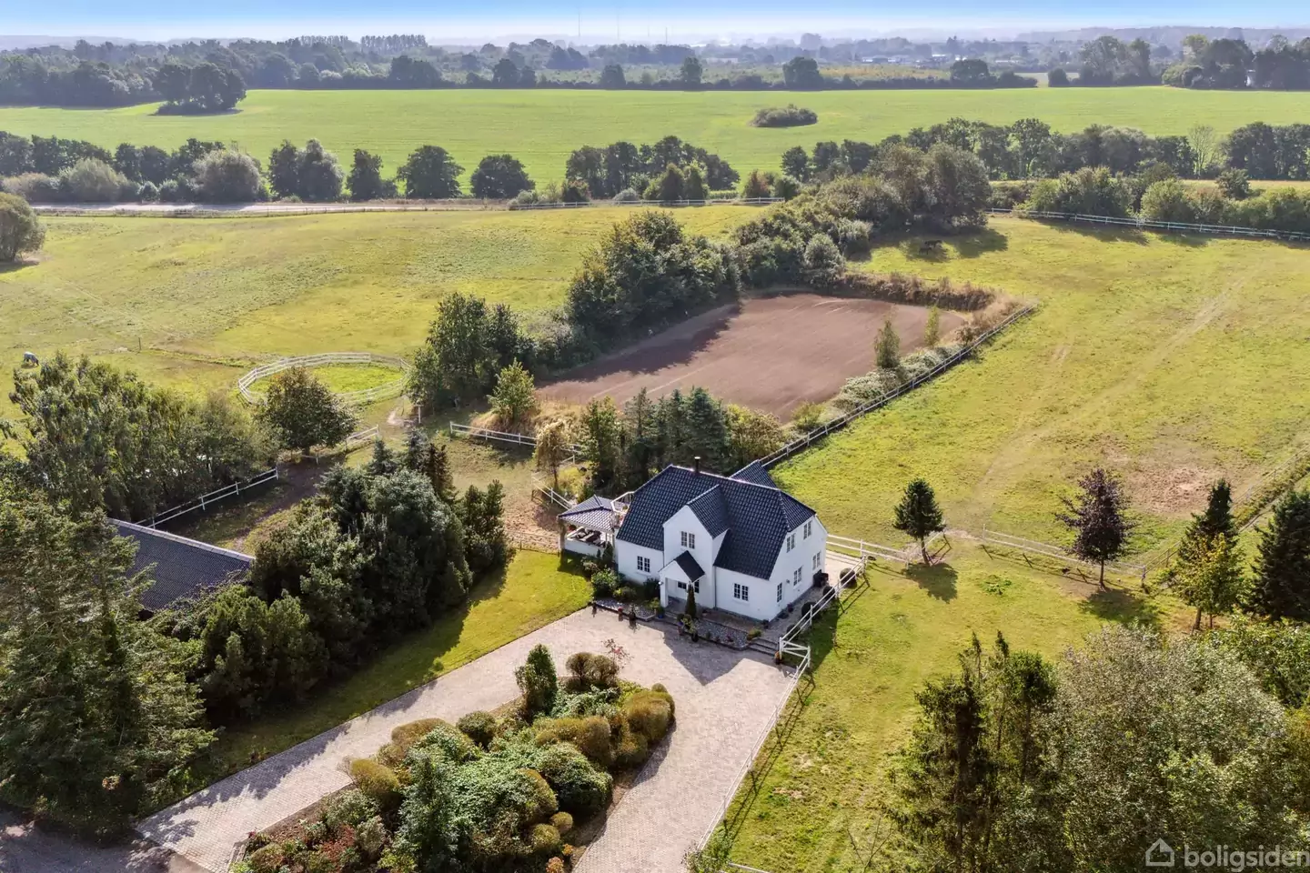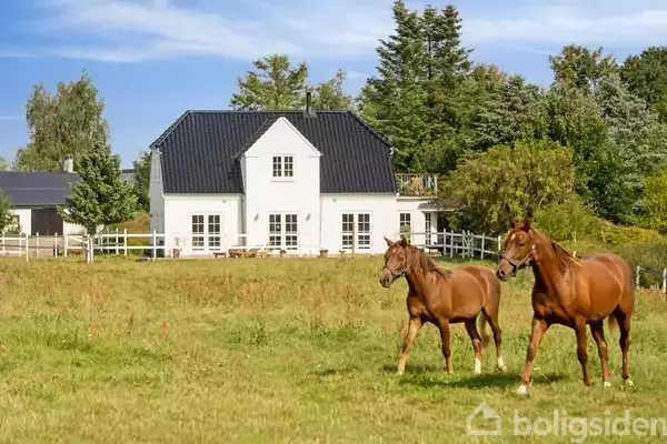 I landlige, naturskønne omgivelser en anelse syd for Køge ligger denne harmoniske landejendom, hvis nyere stuehus fra 2004 udstråler klassisk, gedigen kvalitet i kombination med en moderne beboelse. Foruden hovedhuset står det oprindelige stuehus i bindingsværk endnu og byder på mange muligheder sammen med de store, brugbare udbygninger. Særligt hestehold er oplagt på matriklen, idet der er gode stalde og græsfolde på den godt seks hektar store grund. Endelig er ejendommen udstyret med et seks k
