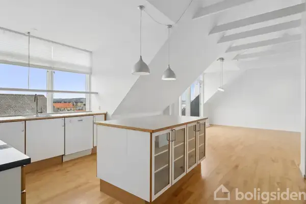 Lys og moderne lejlighed med fjordudsigt – centralt i Mariager På Fruensgaard Plads 3B, midt i Mariagers hyggelige byliv, venter en indflytningsklar lejlighed med en helt særlig atmosfære og en enestående udsigt over Mariager Fjord. Fra den nordvestvendte altan kan du nyde både dagens første kaffe og solens sidste stråler – alt sammen i fredelige og naturskønne omgivelser. Indretningen er gennemtænkt og funktionel, med et stort og åbent køkken-alrum som boligens naturlige omdrejningspunkt. Her e