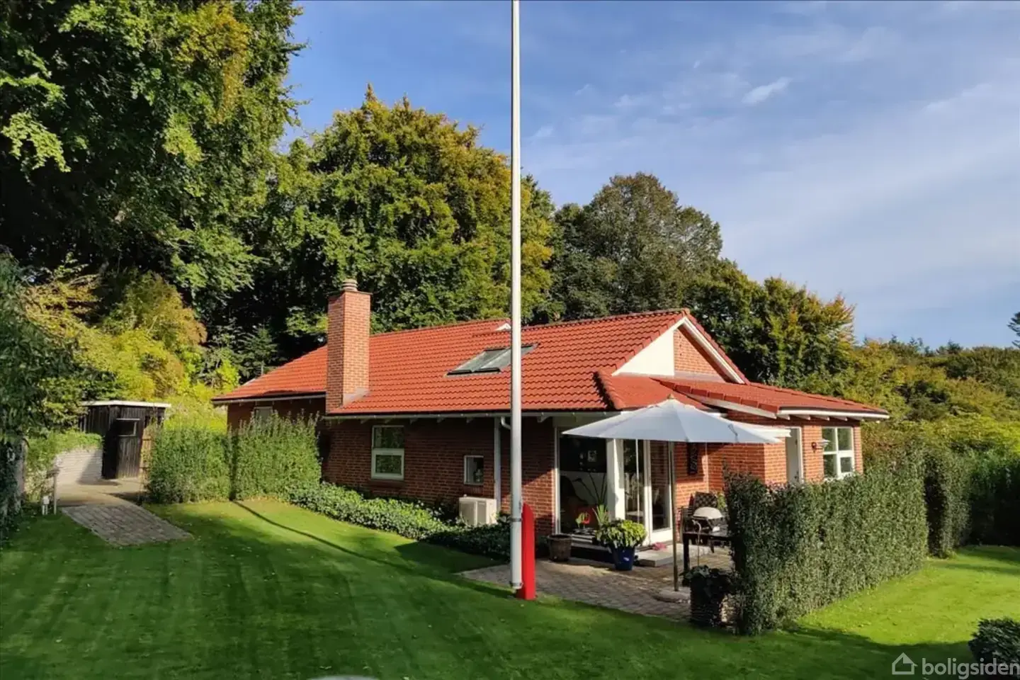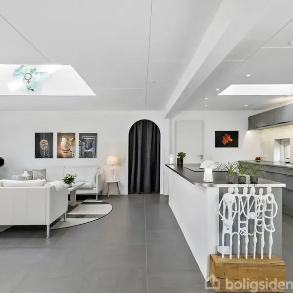 I det eftertragtede Fuglekvarter ligger denne arkitekttegnede villa – en sjælden perle, hvor klassisk murstensarkitektur forenes med nutidig komfort og eksklusive materialevalg. Villaen er opført i 1988 i røde mursten med plane fuger og er løbende moderniseret, senest totalrenoveret i 2023/2024, så boligen i dag fremstår fuldstændig indflytningsklar.Indenfor bydes du velkommen i en lys og rummelig entré med en diskret garderobe. Rummet åbner op til et imponerende alrum. Her strømmer dagslyset ne