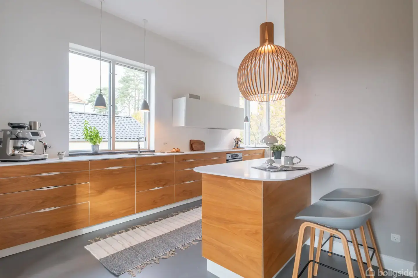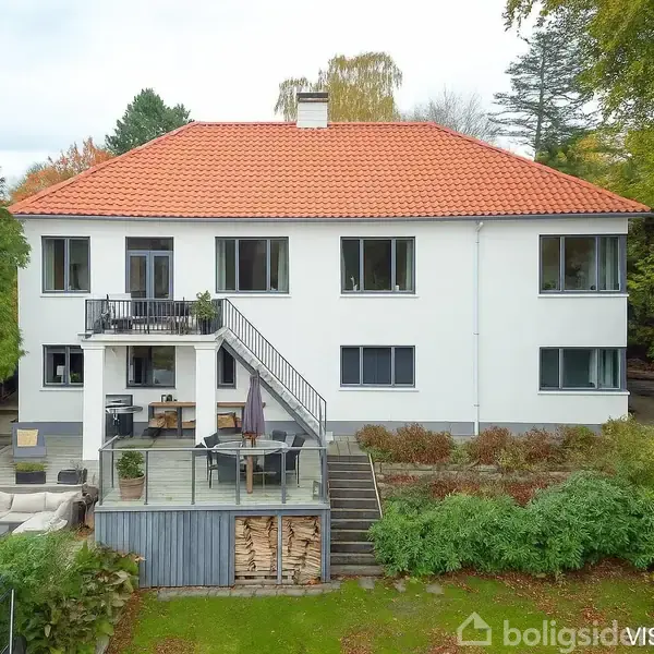 Dette hjem er bare helt fantastisk ! Fra vinduerne og terrasserne breder udsigten sig som et maleri – trætoppene danner et grønt tæppe, og i det fjerne skimtes Sorgenfri Slot mellem grenene. Indenfor mødes man af et hjem fyldt med luft, ro og naturligt lys, hvor arkitekturen emmer af funktionalitet og æstetik i smuk balance. Det øverste plan rummer et elegant snedkerkøkken fra Jesper Holm (2019), hvor kvaliteten kan mærkes i hver detalje. Herfra åbner alrummet sig mod en stor, sydvendt altan – e