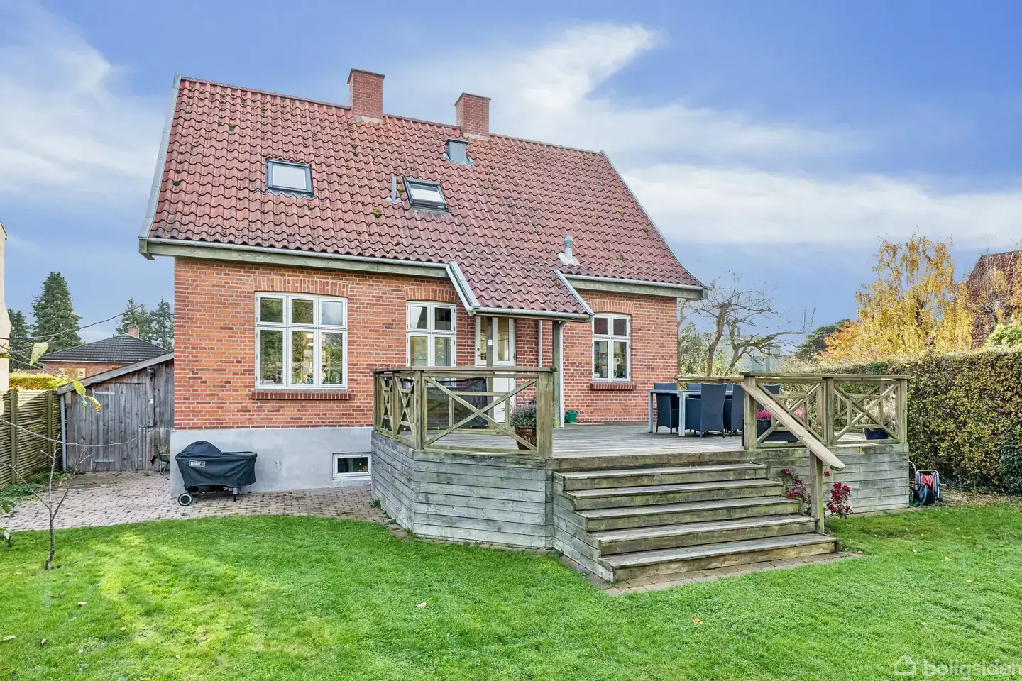 Rummelig villa 152 m² på 748 m² grund i roligt område nær skole og indkøb Denne rummelige villa på 152 m² fra 1924 byder på en meget attraktiv beliggenhed med en stor grund på 748 m² nær skole og alle nødvendige faciliteter. Det solide murstenshus med klassisk rødt tegltag imponerer med sin indbydende facade og en flot træterrasse med adgang til haven. Kombinationen af husets størrelse og grundens omfang, skaber optimale rammer for familielivet i et roligt område med gode forbindelser til byen.