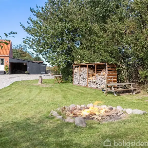 Åbent hus med tilmeldingskrav 3/2 - klik på billede - Sælgers eget kælenavn til huset er "Huset i svinget". Når man selv ser huset og beliggenheden, så forstår man hvorfor. Det ligger så smukt ved den lille vej med navnet Fuglsbøllevejen. Her er netop også et rigt fugle- og dyreliv at kigge på. Højt beliggende og grænsende op til markerne omkring. Beliggenheden i Fuglsbølle er en sjælden kombination af fred og tilgængelighed. Du bor i rolige rammer med masser af lys, luft og fred omkring dig, men samtidig er der kort afstand til Rudkøbing (ca. 6 km), hvor du finder masser af dagligvarebutikker,gode specialbutikker, skole, kulturtilbud og havnemiljø. Med egen bil eller offentlig transport er det let at komme videre til Fyn, og til daglig har du alt, hvad du behøver, lige i nærheden. Boligen er en charmerende og solidt bygget lille villa fra 1949, og med en tilhørende sidebygning (tidligere) værksted i en boliglignende kvalitet. Der er sket løbende vedligeholdelse og forbedringer af boligen. Senest en renovering af badeværelset, og i sidebygningen er indrettet et rummeligt bryggers/grovkøkken, og ved siden af er "fyrrum" og "vaskerum". Sidebygningen er registreret som udhus, og indgår ikke i det angivne boligareal. Sælger har aktivt brugt den stille beliggenhed, og har f.eks. lavet udendørs brusefaciliteter og i sommerhalvåret er sengen flyttet ud på terrassen. Det siger noget om det herlige liv, som man kan leve her tæt på naturen. Boligen må bruges til såvel helårsbolig som til fritidsbolig, der er frit valg.