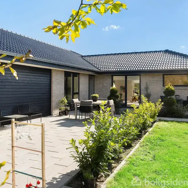 Åbent hus med tilmeldingskrav 2/2 - klik på billede - Velkommen til denne indflytningsklare etplansvilla fra 2023 på 161 m², hvor kvalitet og gennemtænkt planløsning går hånd i hånd. Her får du en bolig, der kombinerer moderne komfort, stilrene materialer og funktionelle løsninger, som gør hverdagen nemmere og hyggeligere. Villaen byder på en separat masterafdeling med rummeligt soveværelse, eget badeværelse med fritstående karbad – en privat oase for forældrene. Hertil kommer tre gode værelser samt et ekstra badeværelse med brus, perfekt til børn, gæster eller hjemmekontor. Hjemmets naturlige samlingspunkt er det store og lyse køkken-alrum, hvor der er god plads til både hverdag og gæster. Den hyggelige alkove og den åbne forbindelse til stuen skaber en indbydende atmosfære og gør boligen ideel til familieliv. Uderummene er lige så velgennemtænkte som huset: en flot anlagt have, der indbyder til afslapning og leg, samt en integreret carport med tilhørende skur, som giver både praktisk opbevaring og nem adgang i hverdagen. Alt i alt en villa, hvor intet er overladt til tilfældighederne – her er der skabt et hjem, som er lige til at flytte ind i.