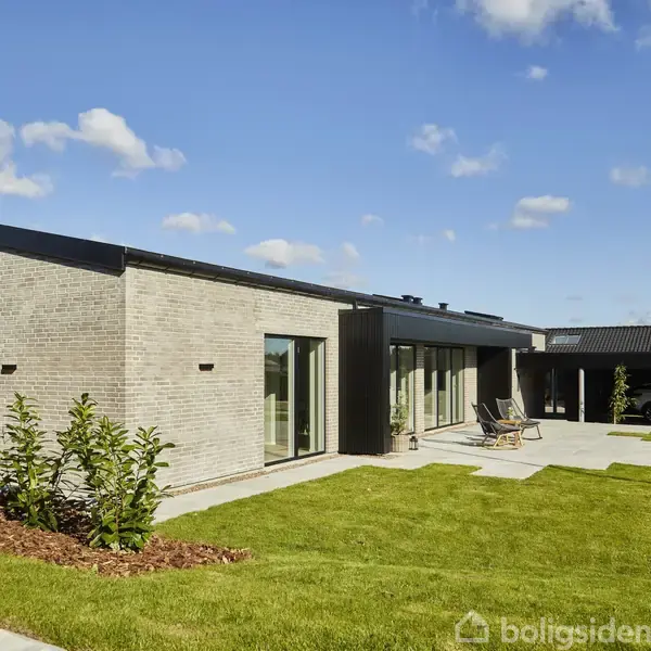 Drømmer du om et hus, der både rummer familiens behov og har fokus på moderne design?Velkommen til dette stilfulde længehus på 198 m², der byder på et flot overdække og imponerende arkitektoniske detaljer, såsom en kombination af ensidig taghældning og fladt tag. Dette hjem er skabt til at opfylde alle familiens behov med både plads til børn og voksne.I huset oplever du, hvordan Velux ovenlysvinduer bringer dagslyset ind i flere rum på en unik måde. Især skal husets hovedbadeværelse fremhæves, h