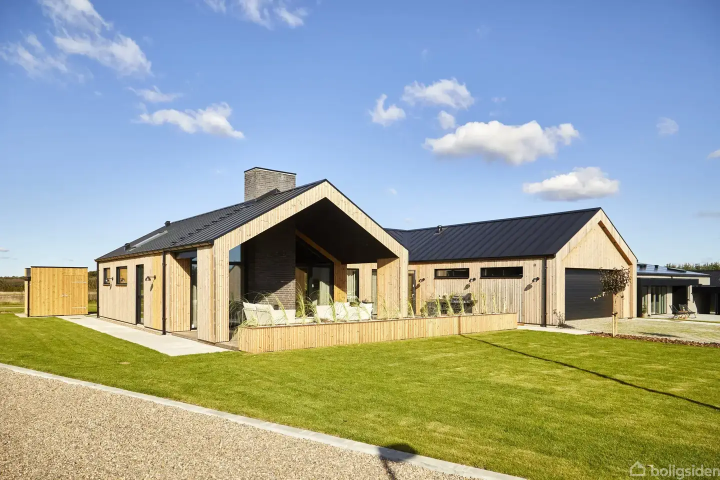 Drømmer du om et hus, der kombinerer moderne minimalisme med en landlig, rustik stil? Oplev den populære barnhousestil, som forener tidløs charme med nutidens behov og livsstil. Dette hus er perfekt for dig, der søger et hjem, hvor inde- og udeliv smelter sammen, og naturen bliver en del af hverdagen. Med en åben planløsning, store vinduespartier og et rummeligt udemiljø – både overdækket og åbent – får du en bolig, der giver lys og luft året rundt. De store vinduer skaber en naturlig overgang
