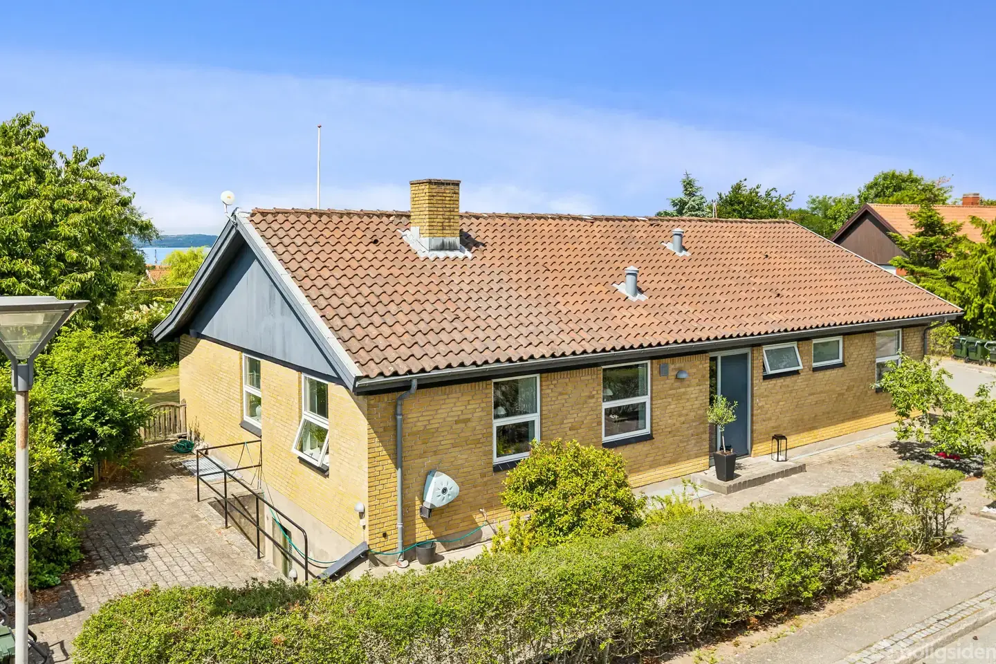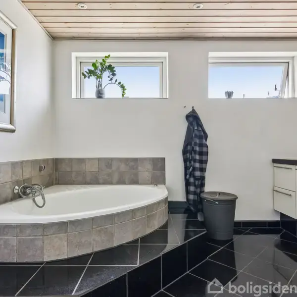 Børnefamilien kan brede sig inde som ude her. Udover nogle store leverum får I nemlig en skøn have og terrasse på matriklen, og beliggenheden er et kapitel for sig. I kan gå til det charmerende byliv i Ebeltoft, og ikke langt fra hoveddøren finder I vej til hverdagens fornødenheder og vandet, der afgrænses af smuk natur. 189 kvadratmeter modtager jer inden døre. Side om side ligger en hyggelig, rummelig opholdsstue og køkkenet med JKE elementer fra 2004, mens modsatte ende består af et badevær