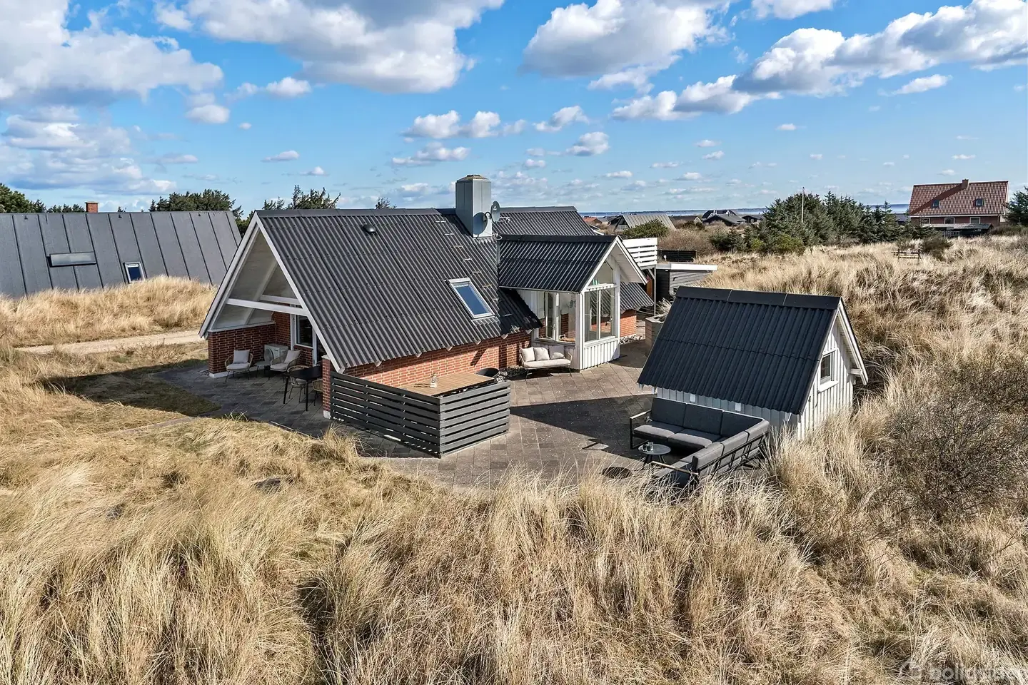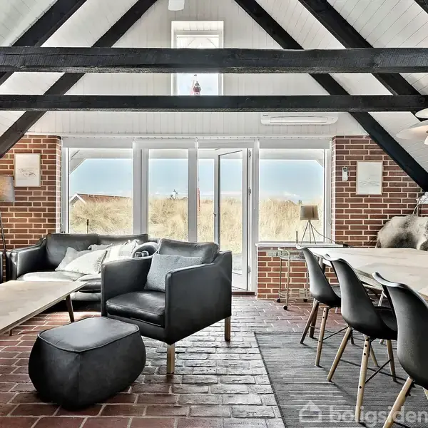 Morgenkaffe med udsigt til både Ringkøbing Fjord og Lyngvig Fyr bliver en naturlig del af hverdagen i dette velbeliggende sommerhus i Lyngvig. Forestil dig at starte dagen med solen, der langsomt står op over Ringkøbing Fjord, mens Lyngvig Fyrs ikoniske lys fejer hen over klitlandskabet mod vest. Netop denne helt særlige beliggenhed danner rammen om dette charmerende og velindrettede sommerhus i naturskønne Lyngvig – kun et stenkast fra Vesterhavet. Sommerhuset byder på ca. 67 m² boligareal samt hems og fremstår i en stemningsfuld, rustik stil med flotte klinkegulve, synlige bjælker og loft til kip, der tilsammen skaber en lys, luftig og indbydende atmosfære. Huset har løbende gennemgået moderniseringer og renoveringer, herunder nyt tag i 2010, og fremstår i dag pænt, velholdt og klar til mange års ferienydelse. Indretningen er gennemtænkt og funktionel: Du bydes velkommen i entré/vindfang, der leder videre til fordelingsgang med trappe til den rummelige hems. Hemsens hyggelige indretning gør den oplagt som børnenes egen ”hule” eller ekstra soveplads, og herfra er der direkte udgang til en østvendt terrasse med en betagende udsigt over området og Ringkøbing Fjord – perfekt til rolige morgener. Stueplan rummer to gode soveværelser med skabsplads, et nydeligt badeværelse med bruseniche samt et lyst og funktionelt køkken i åben forbindelse med den hyggelige stue. Stuen er husets naturlige samlingspunkt med brændeovn, store vinduespartier og udgang til vestvendt terrasse, hvor aftensolen og solnedgangen kan nydes i fulde drag. Ovenlysvinduer i både stue og køkken sikrer et fantastisk lysindfald dagen igennem. Derudover hører der to udhuse til ejendommen. Det største udhus byder på god plads til eksempelvis surferudstyr eller cykler og er samtidig indrettet med både vaskemaskine samt et stort køle-/fryseskab. Udelivet er mindst lige så tillokkende som indendørs: Flere terrasser og hyggelige kroge omkring huset giver mulighed for at finde læ og sol på alle tider af dagen. Om aftenen kan I læne jer tilbage, nyde stilheden og lade jer fascinere af Lyngvig Fyrs karakteristiske lys, der bevæger sig hen over klitterne. Her får du et sommerhus, der kombinerer sjæl, udsigt, beliggenhed og funktionalitet – ideelt til familieferien, afslapning og ægte vestkyststemning året rundt. Et sommerhus, der skal opleves.