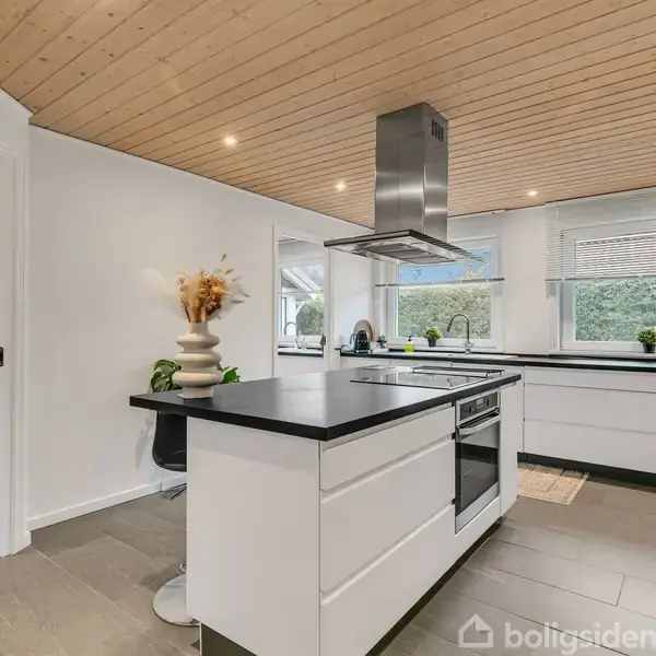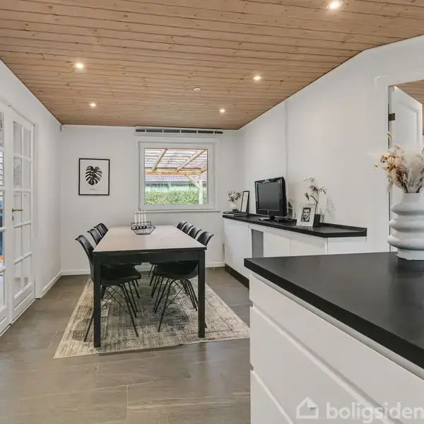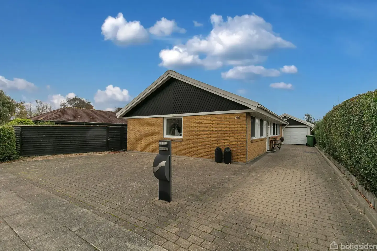I fuldt udbygget kvarter, tilbydes denne yderst velholdte 1 plans villa på 115 m2, med tilhørende stor lukket garage.Villaen er opført i gule sten har vedligeholdelsesfrie plastikvinduer samt døre isat samt et nydeligt mørkt tagstenstag.Indvendigt tilbydes følgende indretning : Dejlig lys entre, med et mørkt klinkegulv, smart akustikpanel, god plads til garderobe og rustikloft med indbygningsspots.Pænt lyst gæstetoilet, med mørkt klinkegulv, rustikloft med indbygningsspots, flot hvidt badeværelsesmiljø skab, med nedfældet håndvask.2 pæne lyse børneværelser med lyst laminatgulv og rustikloft med indbygningsspots.Pænt stort lyst soveværelse, med lyst laminatgulv.Stort lyst flot badeværelse, med mørkt klinkegulv og gulvvarme, trold tekt loft, vandskurede vægge, stor sep. bruseniche, med flotte klinker på væggene, ophængt toilet samt nydeligt hvidt badeværelses miljø skab, med nedfældet håndvask.Stort særdeles flot køkken/ alrum, med et flot hvidt køkken, mørk bordplade, stor køkkenø, mørkt klinkegulv, med gulvvarme, rustikloft med indbygningsspots og plads til stort spisebord. Fra køkkenet er der isat dobbelt fransk glasdør til stuen.Dejlig stor lys opholdsstue, med udgang til haven samt overdækket terrasse , lyst laminatgulv, flot opsat akustikpanelvæg og rustikloft med indbygningsspots.Lækkert stort bryggers, med egen ind/udgang, mørkt klinkegulv, flotte hvide bryggers elementer, med mørk bordplade, rustikloft opsat.Stor garage, med et stort disp. rum, som er indrettet til aktivitetsrum.Hele villaen fremstår i særdeles god samt vedligeholdt stand og har flotte hvide døre isat indvendigt.Har Du lyst til en uforpligtende fremvisning af denne velindrettede villa, da kontakt venligt vort kontor.Overtagelse sker efter nærmere aftale.