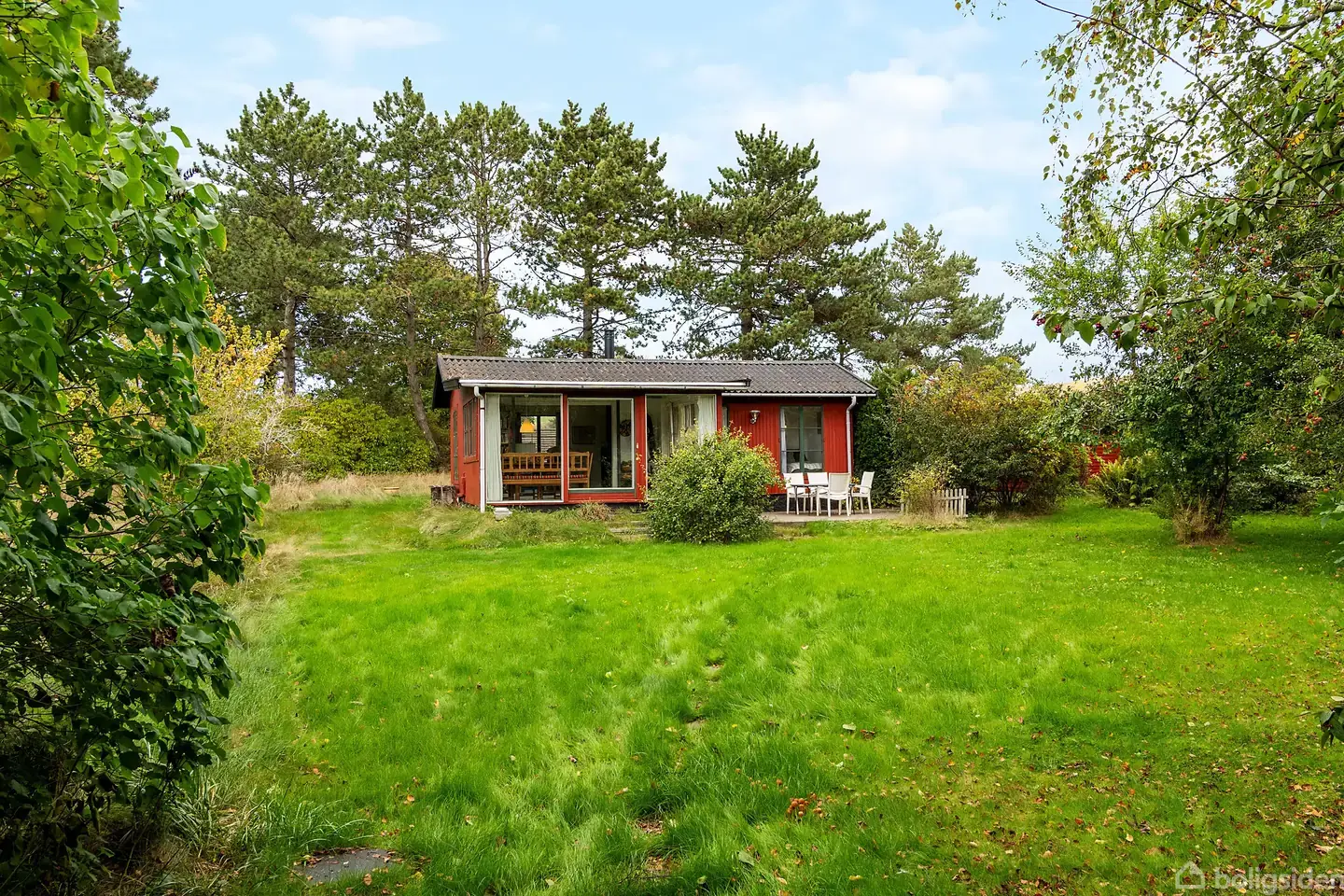 Klassisk rødt sommerhus med udestue og annekser