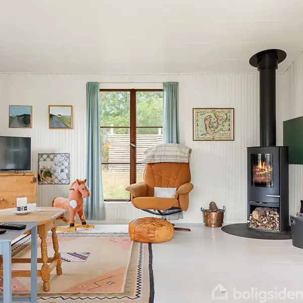 På en stor, grøn og ugeneret grund i det hyggelige Ebbeløkke finder I dette klassiske, røde træsommerhus med udestue og to disponible anneksrum – et charmerende fristed med masser af sjæl. Huset er opført i 1968 og rummer 51 m² i ét plan, mens et anneks supplerer med ekstra sovepladser. Planløsningen er enkel og velfungerende: Fra den overdækkede terrasse/indgang bevæger man sig ind i det lyse opholdsrum, hvor de hvidmalede bræddegulve og de lodrette vægpaneler skaber et let, nordisk udtryk. He