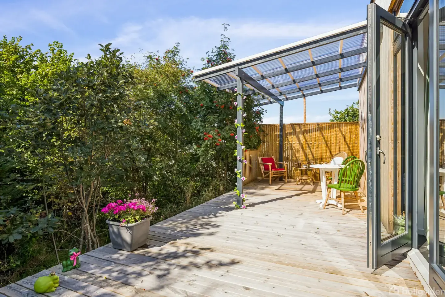Opført i 2023/’24 på en opvokset, kuperet grund. En sjælden perle i et meget populært område. En chance du ikke får igen! Et moderne, helårsisoleret kvalitetshus beklædt i Superwood (som ikke skal males), sikrer dig et perfekt indeklima: svalt om sommeren og lunt i den kølige årstid. Ensidig taghældning med højt til loftet og store vinduespartier, solceller og varmepumpe, stik til bilopladning, udendørs bruser, stort og delvist overdækket terrasseanlæg med både sol, læ og skygge.En moderne arki