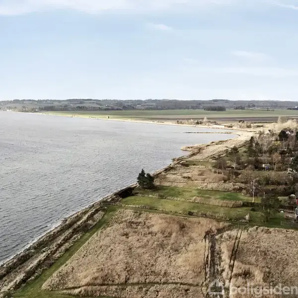 Dette skønne fritidshus ligger i første række med en enestående udsigt over landskabet og vandet. Her får du et fristed, hvor roen sænker sig, og hvor naturen bliver en integreret del af opholdet – både inde og ude. Boligen fremstår lys og indbydende med gennemgående trægulve og et loft til kip, der giver en behagelig rumfornemmelse. I stuen er der store vinduespartier, som lukker lyset og udsigten helt ind, og her kan du nyde varmen fra brændeovnen på kølige dage. Stuen ligger i åben forbindels