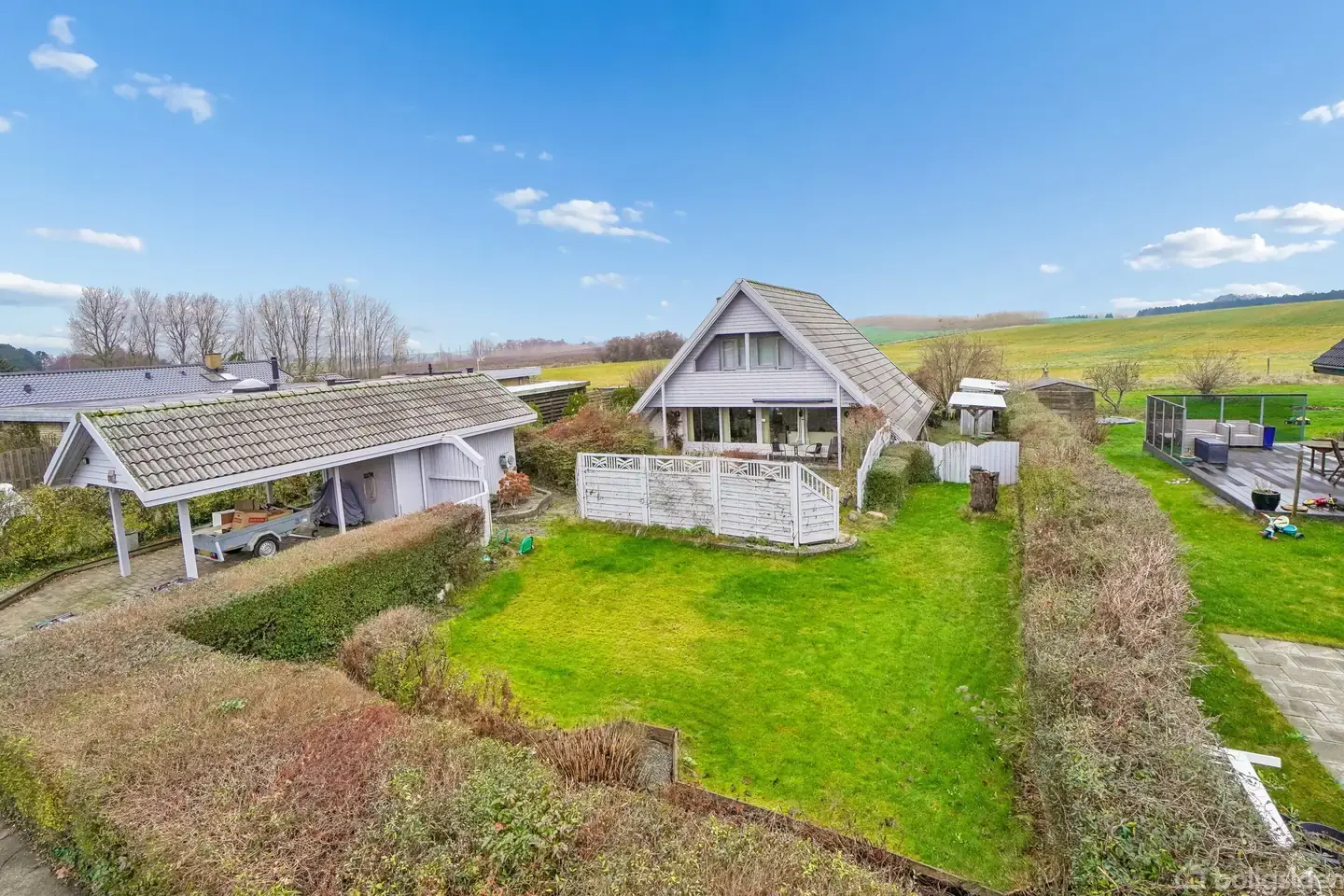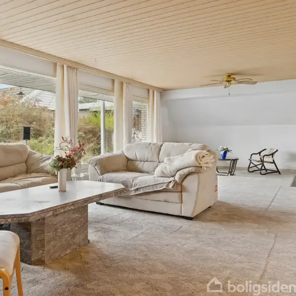 En skøn beliggenhed med flot udsigt Det åbne marklandskab breder sig nord for ejendommen, og udsigten dertil er fremragende. Denne villa i Ølstykke er på den måde placeret lige på grænsen mellem land og by, og hertil følger sågar en velkomponeret planløsning med lyse opholdsrum og gode, regulære værelser. Haven er der heller ikke noget at udsætte på. I stuen modtages et rigt lysindfald gennem det brede, loftshøje vinduesparti. Det bidrager fornemt til den henrivende atmosfære, og i det tilstøde