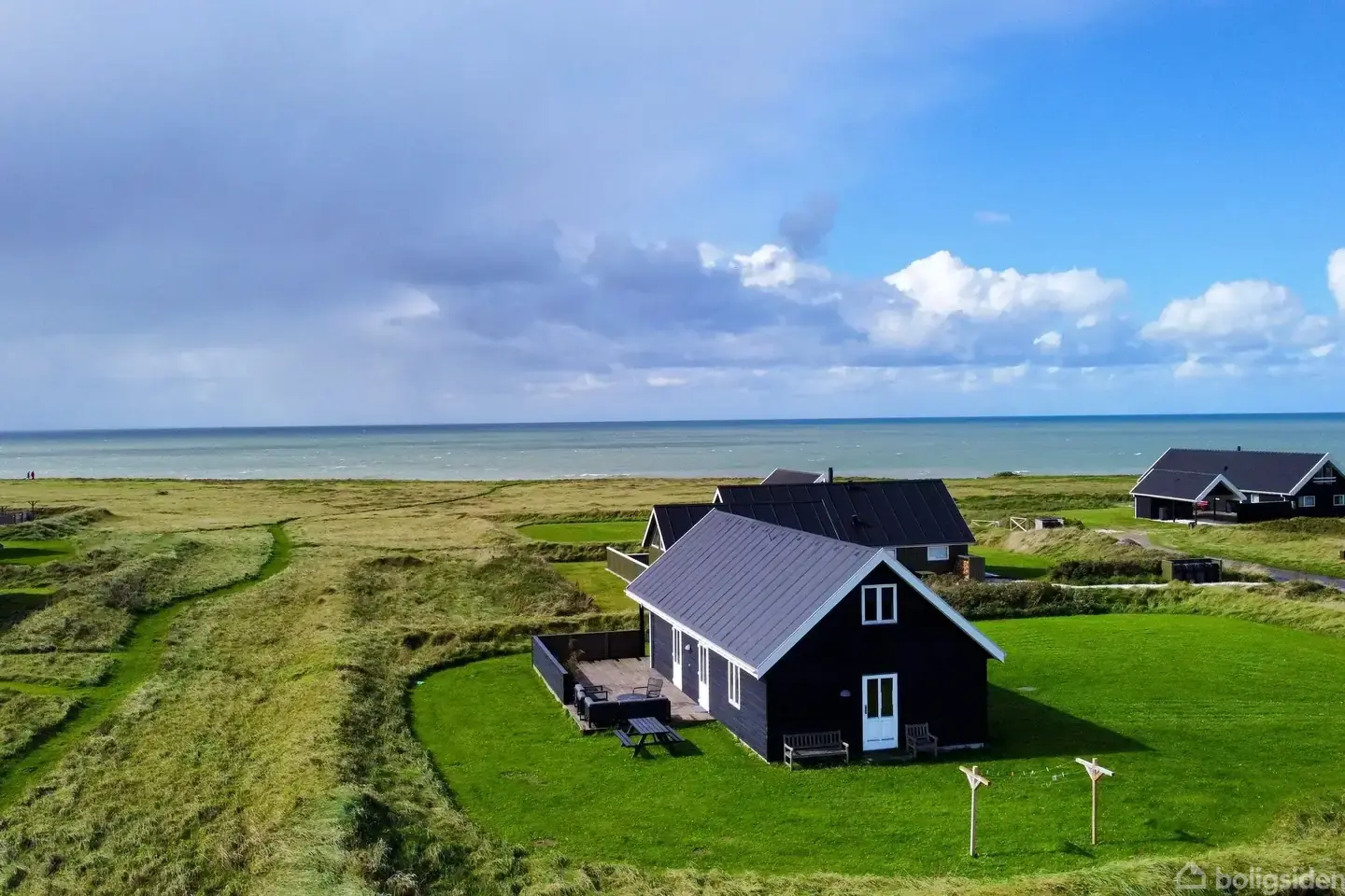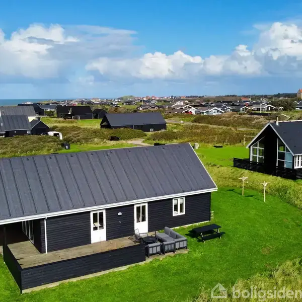 Vi er i Lønstrup. En dejlig badeby med liv hele året, helårsåben købmand, mange butikker og kunsthåndværkere, der endda har mere tid til at snakke med gæsterne udenfor sæsonen end lige i højsæson. I sommeren 2024 har byens bedste restaurant, Villa Vest, endda fået en Michelin-stjerne. Der er 15 km til Hjørring, hvor man ad E39 kan nå til Aalborg på en god time, og på ca. 2 timer er man i Aarhus. Området har masser af oplevelser og det vil føre for vidt at nævne dem alle, så vi nøjes med at fremhæve Rubjerg Knude Fyr, der troner stolt på sin nye placering over 70 meter fra skrænten. Det er en oplevelse uanset årstiden. Den første fredag i september er fyret også oplyst om aftenen, noget, der tiltrækker rigtig mange. Prøv at google "Lys på Fyret" og find eventet under "Hook and Cook". Sommerhusområdet her ligger sydvest for bycentrum, og der er god stiadgang til centrum og den nærmeste trappe til stranden. Der er fin udsigt over området, og fra grunden kan man også se ud til fyret. Grunden er plan bortset fra de volde, der er etableret mellem husene. Grunden er græsbevokset, men plæneklipningen kan reduceres til det absolut nødvendige, så man giver plads til lidt mere biodiversitet. Pluk evt. en buket vilde blomster langs vejen eller i kanten af en kornmark og spred frøene på græsset, der hvor du ikke vil slå det mere. Der kan naturligvis også købes frøblandinger til formålet. Huset er et klassisk længehus, hvor der ikke er spildt en kvadratmeter. I stueplan er der køkken i åben forbindelse med stuen, som naturligvis har den bedste placering mod vest med udsigt mod vandet. Der er 2 soverum samt et badeværelse med bruser. Overetagen indeholder en stor hems med plads til leg og ophold for børn samt en sovesofa. Der er også et separat soverum med op til 4 ekstra sovepladser. Der er to træterrasser, som man kommer ud på mod syd fra stue/køkken. Mod vest har vi havudsigten og solnedgangen, og mod syd er der sol hele dagen. Med adgang udefra er der desuden et redskabsrum med plads til havehynder og diverse redskaber/opbevaring. Huset udlejes genne DanCenter med husnummer 07430. Ved fuld udlejning vil der være et indtjeningspotentiale i størrelsesordenen 75-90.000 om året til ejer.