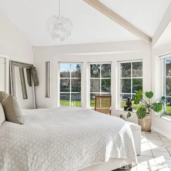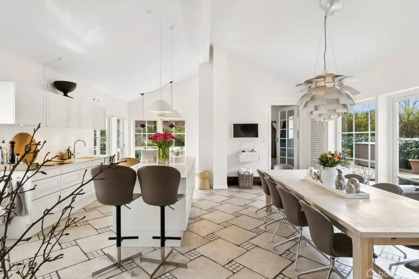 Gadevang er en hyggelig landsby fuldkommen omkranset af Danmarks måske smukkeste skov, og her finder I denne charmerende og hyggelige villa på 200 m2. Villaen har en fantastisk beliggenhed i byen, så I vil opleve at være ugenerede i haven. Husets unikke udformning giver en spændende planløsning med fire værelser, et køkken-alrum, en stue, to badeværelser og en god kælder. Fra entréen træder I ind i køkken-alrummet, som føles endnu mere rummeligt, end det allerede er, med loft til kip og vinduespartier, som bringer haven indenfor. Køkkenet er veludstyret, hvad angår hvidevarer, og der er en kæmpe køkken ø midt i rummet. Fra køkkenet er der åbent til opholdsstuen, som har en afskærmet kontorplads, en solrig karnap og rigelig plads. Forældresoveværelset har et helt unikt udtryk, da den befinder sig i den afrundede tilbygning. Hver eneste aften vil solen lyse rummet op, så I får en dejlig afslutning på dagen. Parret får desuden glæde af et walk-in-closet og et badeværelse en suite. Det andet badeværelse er tæt ved trappen til førstesalen, og på førstesalen er der to værelser og en møblerbar repos. Terrassearealerne er med til at gøre haven til noget helt specielt. Foran huset er der en sydvestvendt træterrasse med sol fra middag til den sene aftentime, og fliseterrasserne i haven giver jer flere steder at slappe af i den ugenerede have. Græsarealet får I let ved at holde. Gadevang er et skønt landsbysamfund med godt sammenhold og et rigt foreningsliv. Byen er indrammet af Gribskov, som inviterer til dejlige gåture. Der er dagtilbud i byen samt gode busforbindelser ind til Hillerød, hvor I finder skole og indkøbsmuligheder.