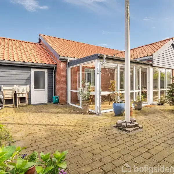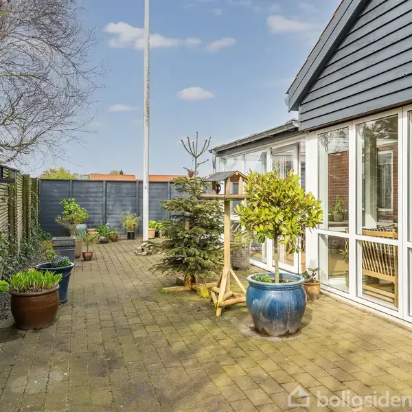 Åbent hus med tilmeldingskrav 3/2 - klik på billede - Velindrettet etplansvilla med to garager i Varde På Gærdet 3 i Varde finder I denne indbydende etplansvilla fra 2009, som rummer 130 kvm. Planløsningen er særdeles veldisponeret, og den består af tre værelser, et badeværelse, et bryggers og et stort, åbent opholdsmiljø med køkken-alrum og stue. Fra stuen er der udgang til en herlig udestue, og på hver sin side af huset er der en garage. Prikken over i’et udgøres af den nemme grund på 543 kvm. I bosætter jer ganske dejligt her på adressen, for beliggenheden på den blinde vej ud til de grønne områder sørger for en dejlig ro. Alle de praktiske fornødenheder, såsom skole, dagtilbud og indkøbsmuligheder kan nås til fods, og både bussen, Varde Vest Station og Lerpøthallen er inden for gåafstand. Som bonus er der heller ikke langt til midtbyen, hvor I har et skønt udbud af butikker og spisesteder i vente. Ejendommen præsenterer sig pænt udefra med røde mursten, hvide vinduesrammer og mørkegråt træværk på garagerne. I træder indenfor via entréen, der også fungerer som bryggers, der på højre hånd leder jer til badeværelset, som er udført med masser af skabsløsninger og en muret bruseniche. Til venstre kommer I til opholdsmiljøet, hvor I oplever en indbydende atmosfære takket være de mange kvadratmeter og det åbne rumforløb. Køkkenet står i et tidløst design med hvide fronter. I udestuen er der et fantastisk lysindfald fra syd og vest samt udgang til haven, og på to af de tre indretningsvenlige værelser kan I se frem til indbyggede skabsløsninger. Haven er anlagt med fliser, så den er ganske let at holde. I har glæde af solens stråler hele dagen, og med de to garager og den rummelig indkørsel er det let at parkere flere biler på matriklen.
