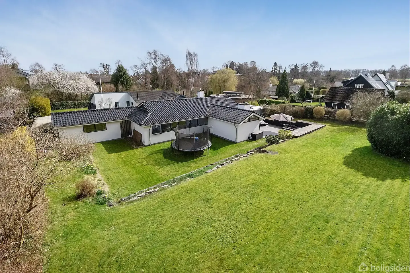 Åbent hus med tilmeldingskrav 8/3 - klik på billede - Denne smukke villa fra 1970 ligger roligt og tilbagetrukket fra trafikstøj på en børnevenlig stikvej i det eftertragtede og naturskønne Gl. Holte. Her bor man tæt på Søllerød Golfklub, søen Vidnæsdam og de smukke skovområder ved Høje Sandbjerg, som indbyder til fantastiske gå-, løbe- og cykelture langs områdets mange stisystemer. Ejendommen ligger på en 1.311 m² stor grund og byder på 195 m² velindrettet bolig samt en 40 m² stor carport med plads til to biler og tilstødende skur med god opbevaringsplads. Villaen fremstår i virkelig flot stand og har bl.a. fået nyt køkken og tegltag i 2016. I 2023 er der yderligere blevet installeret nye døre og vinduer og nye gulve med gulvvarme i hele huset. Når du ankommer til huset, træder du ind i en lys og rummelig entré/bryggers med store skabe og god plads til hele familiens overtøj. Herfra ledes du videre ind i et stort og flot køkken-alrum, som er indrettet med et lækkert, veldisponeret Svanekøkken med alt i moderne hårde hvidevarer og smukke klinkegulve. I åben forbindelse ligger den store spisestue med plads til et langt spisebord, hvor både familie og gæster kan samles. Herfra er der adgang til en hyggelig og rummelig opholdsstue med loft til kip. Fra køkken-alrummet er der direkte udgang til en stor, sydvestvendt terrasse, som ligger skønt i solen og giver adgang til den dejlige have. I forbindelse med vinduesudskiftningen i 2023 er der installeret en elegant glasfoldedør fra Lacuna, som gør det muligt at åbne helt op mellem alrummet og haven - perfekt til sommerens mange hyggestunder. Til højre for entréen og i åben forbindelse med spisestuen ligger værelsesafdelingen. Her byder en fordelingsgang på fire pæne og rummelige værelser samt to flotte, nyere badeværelser opført i lyse, moderne klinkematerialer. Det bagerste - lidt større - værelse er indrettet som forældresoveværelse/master bedroom med eget badeværelse. I forlængelse af villaen findes et stort, isoleret anneks, som i dag benyttes til opbevaring, men som også nemt kan indrettes til mange andre formål. Derudover er der endnu et skur på 14 m². Haven er stor, velanlagt og frodig med masser af plads til børneleg og sommermiddage på terrassen. I 2023 er der opsat en stor elektrisk markise over terrassen, som - i samspil med glasfoldedøren - skaber en skøn overgang mellem ude og inde. Inden for kort afstand finder du Trørød Skole, daginstitutioner, offentlig transport, gode indkøbsmuligheder og et væld af sportsfaciliteter. Nærum Gymnasium ligger blot få kilometer fra jeres kommende hjem.