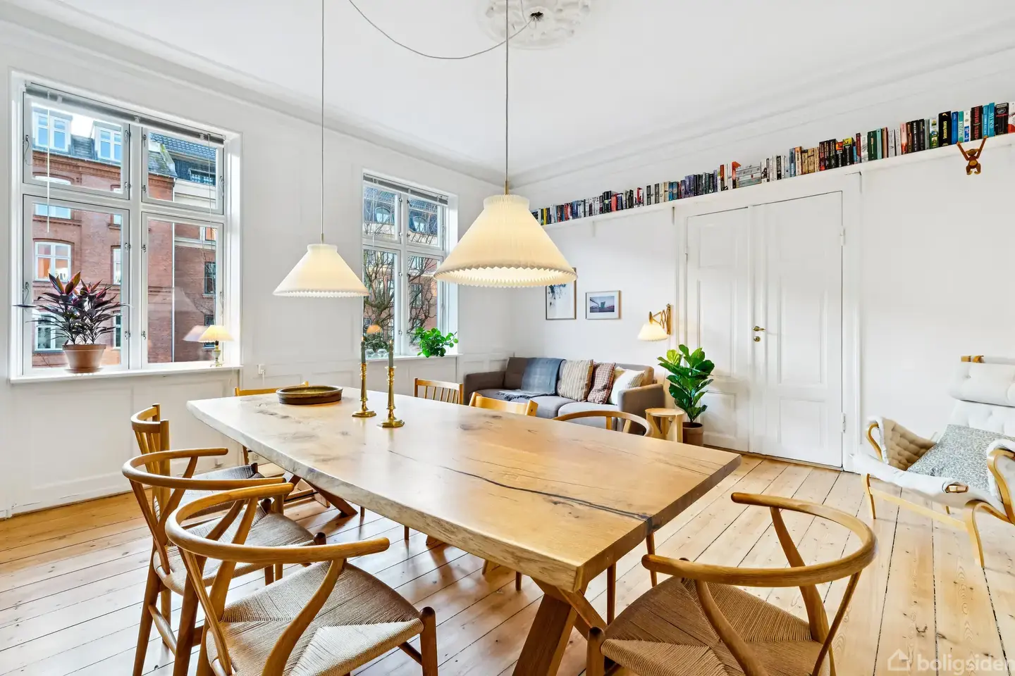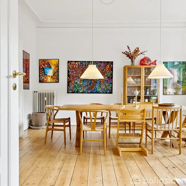 Lejligheden ligger tilbagetrukket fra Gammel Kongevej i en ejendom fra 1863, hvor byens tempo dæmpes allerede ved hoveddøren. Bag facaden gemmer sig 145 veludnyttede kvadratmeter, der fordeler sig over fem rum med en planløsning, som fungerer i hverdagen.Man træder ind i en lang entré, der naturligt forbinder boligens rum. Herfra åbner de to stuer sig med en behagelig rummelighed og et markant lysindfald fra de brede vinduer. De originale plankegulve, de høje lofter og de klassiske detaljer sætt