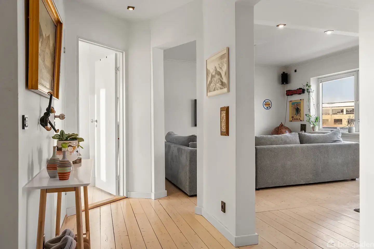 Attraktiv lejlighed med altan og udsigt over LimfjordenPå Gammel Strandvej 7, 3. th. finder du denne velindrettede lejlighed på 80 m² med en god planløsning, flot lysindfald og udsigt over Limfjorden. Her får du en bolig med altan, fælles gårdmiljø og gode opbevaringsmuligheder. Alt sammen i en attraktiv beliggenhed tæt på både vand og by.Lejligheden byder velkommen i en lys entré med spots i loftet. Her er et praktisk indhak med skab med skydelåger og mulighed for vaskemaskine, hvilket giver en