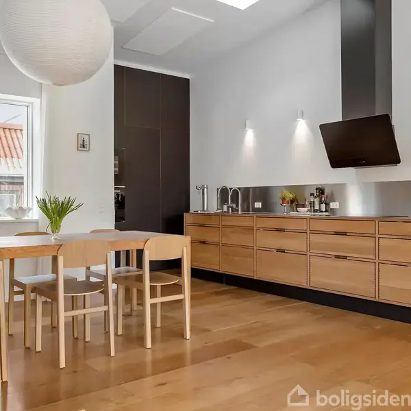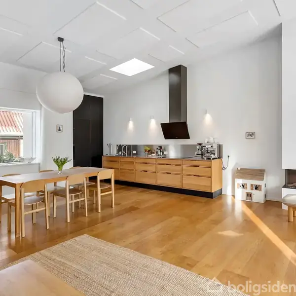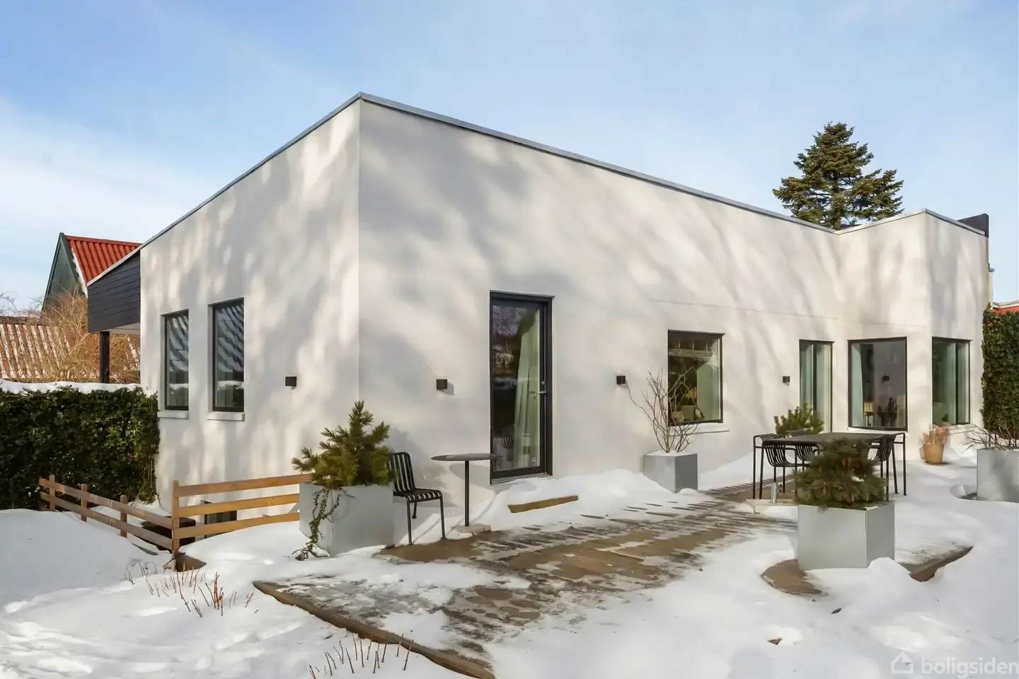 Åbent hus med tilmeldingskrav 8/3 - klik på billede - For enden af en lille stikvej ligger denne gennemrenoverede ejendom som en fredelig og privat oase på en stor, solrig grund, hvor lys, ro og natur danner rammen om hverdagen. Allerede ved ankomsten mødes man af den karakterfulde hoveddør, der tilfører varme og personlighed til den stilrene, hvide facade og skaber en indbydende første fornemmelse af hjemlig elegance. Indenfor byder entré og bryggers velkommen med praktiske, vedligeholdelsesnemme overflader samt gulvvarme i alle rum, hvilket sikrer en behagelig komfort året rundt. Herfra ledes man naturligt videre ind i boligens hjerte – det imponerende køkken-alrum – hvor den markante loftshøjde, de store lysindfald og brede luksuriøse plankegulve skaber en lys, luftig og næsten svævende rumfornemmelse med god plads til både hverdag og gæster. Det snedkerfremstillede køkken i egetræ med fingertappede skuffer understreger boligens høje kvalitetsniveau, mens den elegante stålbordplade og den praktiske kogende vandhane tilfører både funktionalitet og et eksklusivt, moderne udtryk. I åben forbindelse ligger spiseområdet og et hyggeligt pejsehjørne med udsigt til haven og direkte adgang til den store, smukke træterrasse, som forlænger opholdsrummet ud i det fri. ?Boligen rummer to gode og indretningsvenlige soveværelser, begge med samme flotte loftshøjde og plankegulve, der understøtter den gennemgående rummelighed. Fra det store soveværelse er der direkte udgang til haven, hvilket skaber en særlig forbindelse mellem inde- og udeliv. Badeværelset fremstår stilrent og veludført i lækre materialer, nøje afstemt med resten af boligens æstetik. I kælderen findes et disponibelt rum i samme høje stand som resten af huset, velegnet til hobby eller ophold samt med gode opbevaringsmuligheder. Ejendommen er desuden tilsluttet fjernvarme, som er tilmeldt og betalt. Hertil kommer et stort skur og en carport, der fuldender rammerne om en moderne, komfortabel og bekvem hverdag i naturskønne og private omgivelser. Den store, veletablerede have er smukt anlagt og føles helt afskærmet, når træerne er sprunget ud, og byder på stedsegrøn hæk, bærbuske, legehus, bålsted og masser af plads til både leg, afslapning og hyggelige ophold i grønne omgivelser.
