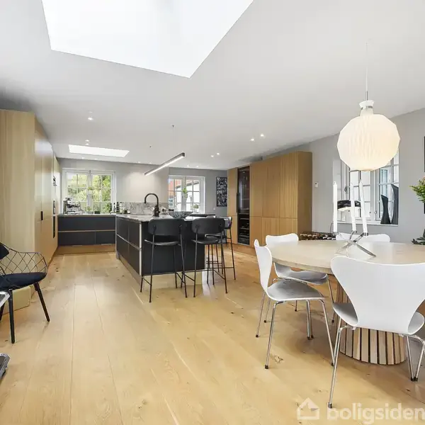 Suverænt beliggende i det eftertragtede Farum Vest og hører under skoledistriktet Solvang. Du får en totalt indflytningsklar et plans villa, hvor stilen er gennemført og med respekt for den tidligere portnerbolig og med sans for detaljerne - hvilket giver en helt igennem dejlig atmosfære i huset. Villaen strækker sig ud på grunden med mange "knæk". hvilket giver et naturligt flow, når man bevæger sig igennem huset. Lyset strømmer praktisk taget ind i alle rum.Sælger har formået at skabe sammenhæ