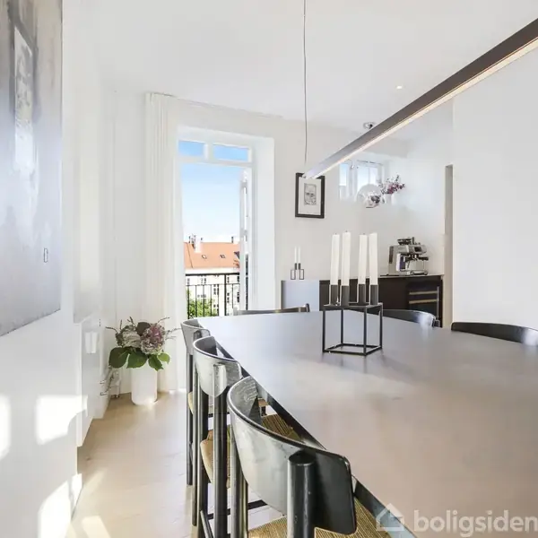 Lejligheden fordeler sig over to etager og fremstår både elegant og funktionel med et flot sammenhængende udtryk. På første sal bydes du velkommen i en rummelig entré, der åbner sig mod et stilrent køkken med mørke, grebsløse fronter og god bordplads. Køkkenet ligger i åben forbindelse med spisestue og stue, hvor de store vinduer og den markante loftshøjde skaber en helt særlig rumfornemmelse. Her er luft, lys og en klar fornemmelse af kvalitet. Fra stuen er der udgang til en solrig altan med udsigt mod gården – et perfekt spot til et glas vin i aftensolen. Et gæstetoilet fuldender etagen. En elegant trappe fører op til boligens øverste plan, hvor man mødes af rolige og lyse rammer. Her finder du et rummeligt soveværelse med indbyggede skabe, et kontor i åben forbindelse med reposen samt et dejligt værelse med udgang til lejlighedens anden altan. Badeværelset er indrettet med lyse klinker, bruseniche og smukke overflader i en harmonisk, afdæmpet tone. Hele boligen bærer præg af kvalitet og arkitektonisk sammenhæng. De lyse plankegulve, det smukke lysindfald og de skrå vinkler giver hjemmet karakter og varme – en sjældent vellykket kombination af funktionalitet og æstetik. Ejendommen:Lejligheden ligger i en smuk og velholdt ejendom fra 1872, hvor den lyse facade og de klassiske detaljer giver bygningen et næsten parisisk udtryk. Bag den livlige Gasværksvej gemmer sig en hyggelig, lukket gårdhave, som kan nydes fra altanen med morgensol. Området:Gasværksvej ligger centralt på Vesterbro med alt, hvad du behøver, lige om hjørnet. Her er både caféer, restauranter, metro og indkøb inden for få minutters gang – og samtidig en rolig, lokal stemning, der gør det let at føle sig hjemme midt i byen. Mange tak fordi Du kiggede på et af vores boligemner. Såfremt Du har brug for yderligere oplysninger, eller hvis Du ønsker at blive skrevet op i vores effektive køberkartotek, er Du altid velkommen til at kontakte os. Vi anbefaler endvidere, at Du følger os på Instagram og Facebook hvor vi tillige ofte annoncerer nye boliger før de rammer diverse boligsites på internettet. Hvis Du overvejer et salg eller blot et pristjek af Din nuværende bolig, vil vi se meget frem til at præsentere Dig for en gratis salgsvurdering, hvor vi omhyggeligt vil vurdere Din nuværende bolig med et personligt engagement, naturligvis helt uforpligtende samt med tilbud om solgt eller gratis.