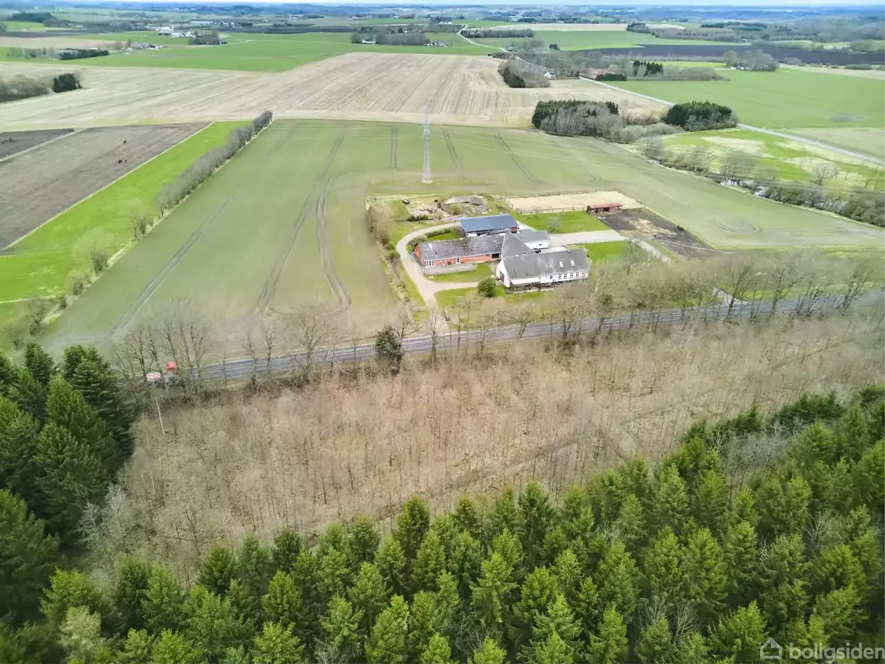 Ejendommen byder på to velholdte boliger med god plads og strækker sig over et areal på 8,2 hektar, hvoraf 4,8 hektar er agerjord, der ligger omkring bygningerne. Hovedstuehuset, opført i 1925, med pudset facade og eternittag. Boligareal på 201 kvadratmeter, løbende moderniseret og vedligeholdt. Senest med et nyindrettet badeværelse. Stueplan byder på entre, køkken, stue og to værelser. På første sal findes yderligere to værelser, et depotrum samt et disponibelt rum, som er forberedt til badeværelse. Bolig nr. 2 er beliggende i en tidligere landbrugsbygning, der blev ombygget i 2012. Flot renoveret og indrettet til en moderne bolig med et boligareal på 171 kvadratmeter. Indretningen omfatter entre, køkken og stue i åben sammenhæng, tre værelser samt et stort og et mindre badeværelse. Placeringen af de to boliger på ejendommen er ideel, idet de vender hver sin vej, hvilket giver mulighed for at to familier kan bo uforstyrret fra hinanden samtidig med, at de stadig er tæt på hinanden. Udhusene på ejendommen er funktionelle og alsidige. I dag anvendes de til lager, værksted, tidligere gårdbutik, gildesal, hestestald mv. Bygningerne er i god stand og tilbyder mange anvendelsesmuligheder.