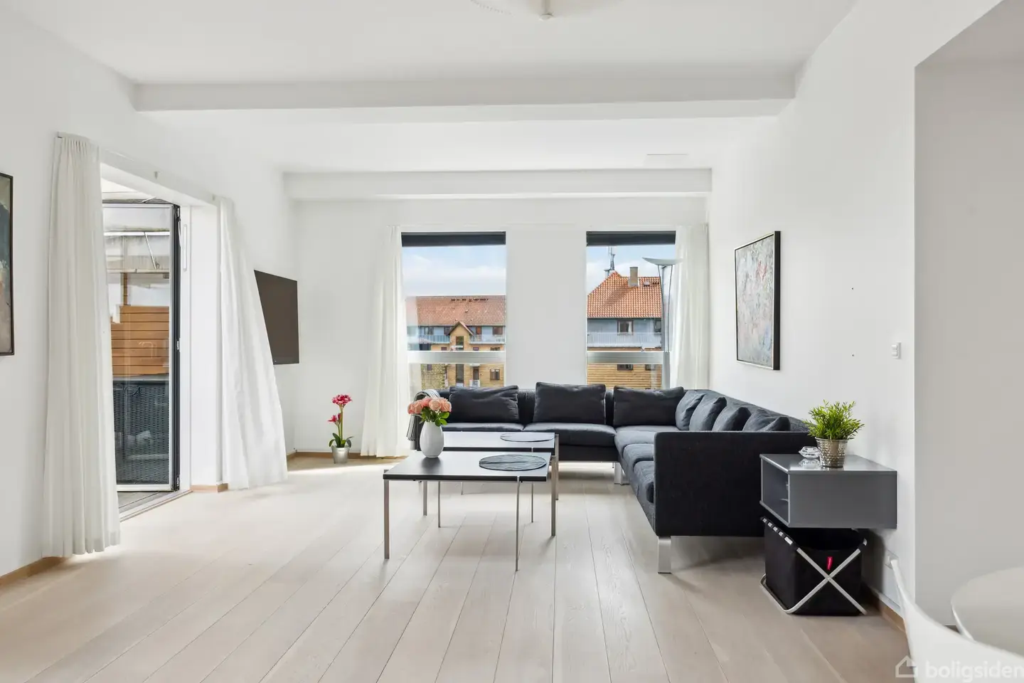 Velkommen til et indflytningsklar hjem med plads, komfort og beliggenhed i særklasse.Lejligheden forener moderne komfort med byens puls lige uden for døren. Med hele 141 m² veludnyttet boligareal får du her en indflytningsklar lejlighed, hvor livskvalitet og funktionalitet går hånd i hånd.Lejligheden er indrettet med tre store lyse værelser, der giver fleksible muligheder – hvad enten du har brug for soveværelser, kontor eller gæsteværelse. Det store åbne køkken-alrum ligger i direkte forbindel