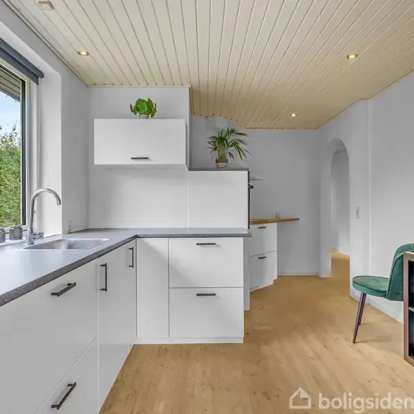Overkommelige boliger på store matrikler er en disciplin, som aldrig går af mode. I det lille, hyggelige villakvarter syd for Kaas Hedevej inviterer vi dermed indenfor i en villa, som har gode meritter på CV’et. Der er kort afstand til de daglige fornødenheder, mens de lokale strande og klitplantager viser Vendsyssel fra sin allerbedste side.De tørre tal viser tydeligt, at ejendommen ikke helt er som de fleste etplansvillaer. Selve boligen er et kalkstensbyggeri fra 1973, og grundhuset fremstår