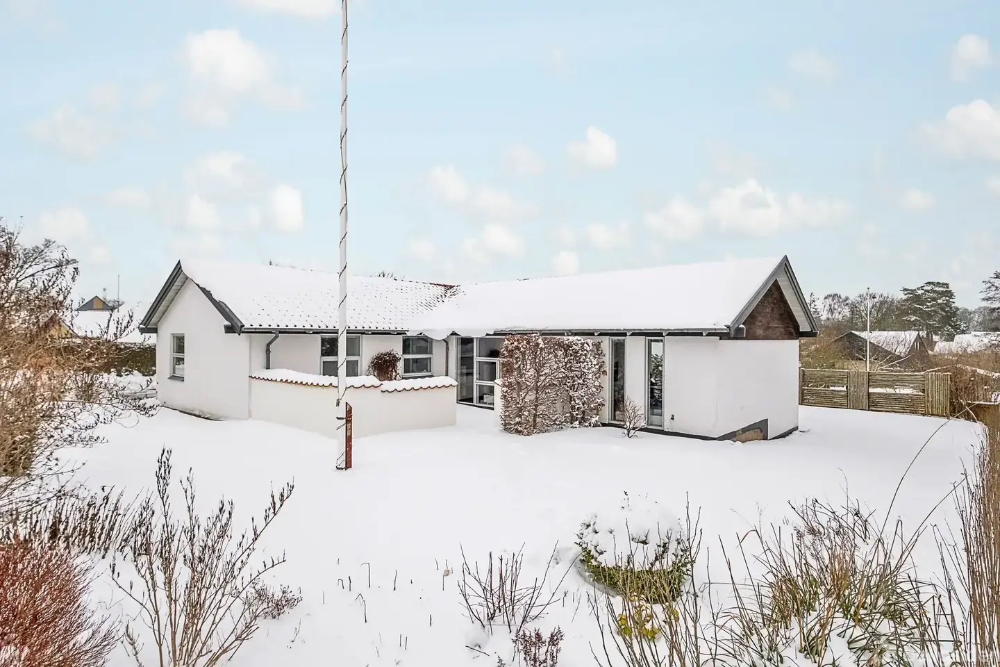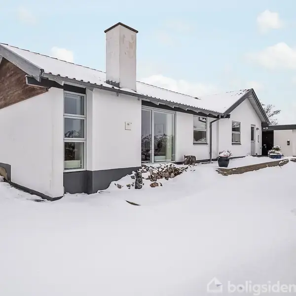 På Georgsmindevej 5 finder I et lyst og indbydende hjem, hvor der er tænkt på både en god planløsning og høj funktionalitet. Det hvidmalede hus med det klassiske røde tag fremstår velholdt og charmerende – et sted, hvor man hurtigt føler sig hjemme.Indenfor mødes I af en veldisponeret planløsning, der byder på hele fire værelser, to badeværelser og et rummeligt køkken/alrum i åben forbindelse med stuen. Køkkenet ligger centralt i huset og er udført i lyse materialer. Her er der god plads til mad