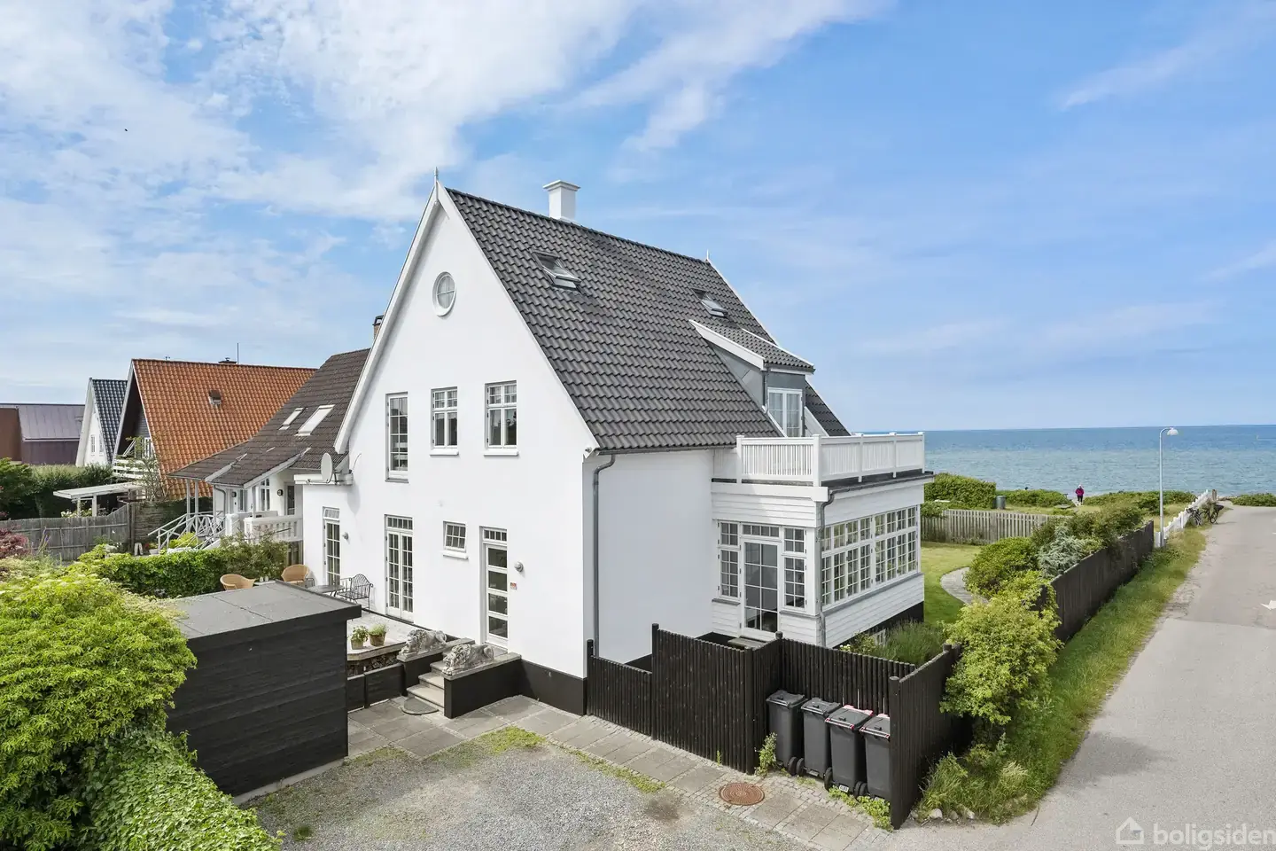 Hvis I er stedkendte i Gilleleje, kan det meget vel være, at I allerede har beundret denne liebhavervilla fra 1910. Den er nemlig en meget smuk og velholdt ejendom, der charmerer med sin udestue med småsprossede vinduer, to altaner og andre fine arkitektoniske detaljer – og derudover har den en bemærkelsesværdigt god beliggenhed lige ud til stranden og bare fire minutters gang fra havnen. Med sådan en adresse har I altid noget nyt at kigge på, for havet skifter farve og udseende alt efter vind