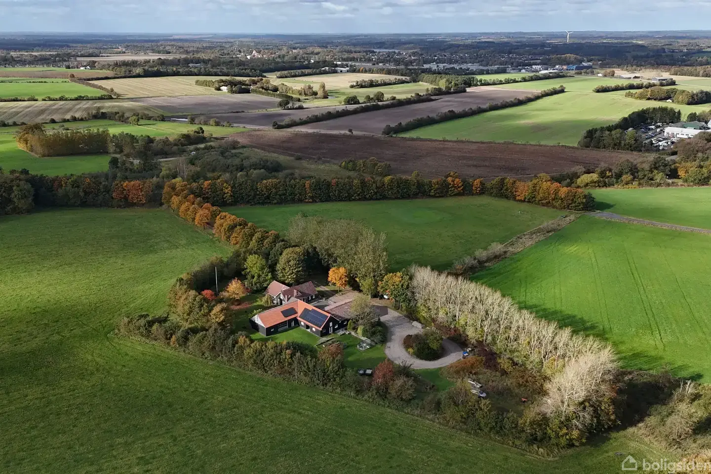 Skøn og harmonisk ejendom midt i det hele – omgivet af smuk natur og med kort afstand til hverdagens bekvemmeligheder. Ejendommen ligger kun få kilometer fra Ejstrupholm, hvor du finder skole, indkøbsmuligheder, idrætsfaciliteter m.v., og blot 10–15 minutters kørsel til både Give, Brande og motorvejen mod Herning og Vejle. Ejendommen er løbende renoveret og moderniseret, og fremstår i dag med et fritliggende stuehus samt lade- og udhusbygninger i rigtig god stand. De fleste af stuehusets vinduer og døre er træ/alu. Ejendommens facader er fornyligt malet. Stuehuset byder i stueplan på en indbydende entré, et værelse, et badeværelse samt et stort og lækkert køkken/alrum i åben forbindelse med en rummelig vinkelstue. På førstesalen findes et repos med kontorplads, et toilet, to gode værelser og et stort soveværelse mod vest og med udgang til altan – perfekt til at nyde solnedgangen over markerne. Udhusene er både funktionelle og charmerende. En del er indrettet som lade og fyrrum, mens en anden længe rummer et flot bryggers/vaskerum, badeværelse, garage med epoxygulv og hvælvet loft, stort disponibelt rum. I udhusbygningerne er der gulvvarme flere steder. Den nyeste udhuslænge er indrettet med separat entré/indgang og en imponerende gildesal med loft til kip, store vinduespartier og bar – et ideelt rum til fester, events eller kreative projekter. Ejendommen har pillefyr, godkendte afløbsforhold og egen boring med vandrensning. Derudover er der et 8 kWh solcelleanlæg, ca. 10 år gamle. Til ejendommen hører et jordareal på ca. 3,6 hektar, beliggende omkring bygningerne. Jorden er p.t. udlejet, men giver oplagte muligheder for hestehold, hobbylandbrug eller lignende. I området findes desuden gode muligheder for ride- og opstaldningsfaciliteter. Alt i alt en ejendom, der kombinerer landlig idyl, moderne bekvemmeligheder og masser af muligheder – centralt placeret i Midtjylland.