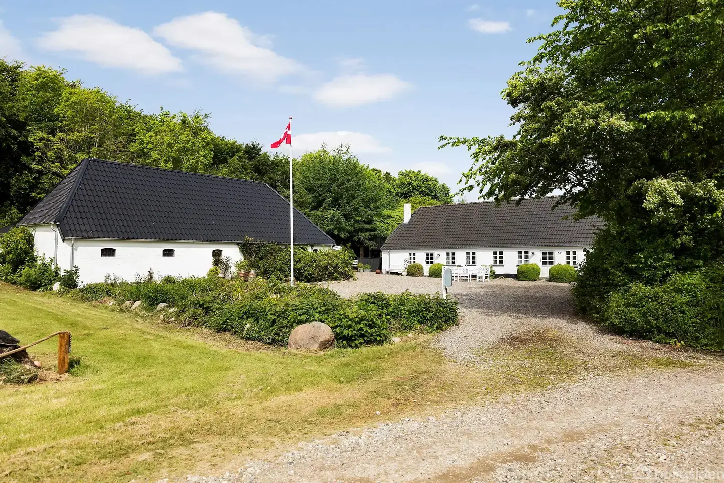 Skal man udpege områdets bedste beliggenhed, skal man have ret gode argumenter for at forbigå Gjelleroddevej 57, som ligger perfekt tilbagetrukket og alligevel med få trin til stranden og badebroen. Når ejendommen ovenikøbet er en smuk, klassisk villa, betyder det endda, at den også hører til områdets absolut mest interessante. Hvad beliggenheden angår, er det lige før, vi sprænger skalaen. Den strandnære placering giver nemlig udslag i en smuk udsigt til fjorden, hvor bådtrafikken i indsejlingen tilføjer masser af dynamik. Samtidig har ejendommen en lang række kvaliteter, som selv de bedste sommerhuse på Gjellerodde ikke kan bryste sig af. Da huset er godkendt til helårsbeboelse, kan I faktisk bosætte jer på én af de skønneste adresser i hele postnummeret. Og hvis I foretrækker at flexe, kan I selvfølgelig også bruge villaen som sommerhus. Det flotte byggeri fra 1860 er grundigt vedligeholdt, så ejendommen står skarpt med kridhvide facader og charmerende vinduer. I får tilmed ikke bare et hus, men også en række udbygninger i en fornuftig kvalitet. Ligesom selve boligen ligger de samlet om en hyggelig gårdsplads, hvor de ekstra 220 m² repræsenterer masser af muligheder. I boligen venter 148 m², som er distribueret i et enkelt plan. Standsmæssigt er der meget at komme efter, og med lyse løsninger overalt møder I en sammenhængende og overraskende moderne bolig. I den ene side af huset venter et fyrrum samt et nydeligt badeværelse med bruseniche i matteret glas, mens modsatte ende af boligen byder på tre værelser, hvoraf det ene er et gennemgangsværelse. Som samlingspunkt træder opholdsafdelingen i karakter, og her finder I blandt andet en skøn, lys vinkelstue lige midt i huset. I køkkenet ved siden af får I fin plads til et spisebord, og i selve køkkenet har man desuden valgt pænt, sort-hvidt inventar i en moderne stil. Endelig får I et skønt viktualierum, som er lige dele praktisk og charmerende. Gjellerodde er et naturskønt sommerhusområde ved Limfjorden, som ligger fem minutters kørsel fra Lemvig. Der er fine badeforhold, og man har anlagt en badebro, så det er nemt at få en dukkert. Gode stisystemer gør det nemt at skyde genvej til vandet, og området byder desuden på en legeplads ved Café Odden, som også lokker med en iskiosk. Området er kendt for sine bakker, der bidrager til det betagende landskab, og midt i det hele finder I Lemvig Golfklub, som muligvis har landets smukkeste omgivelser. Mellem Lemvig og Gjellerodde er der anlagt en hyggelig planetsti, så turen til og fra byen nemt kan tilbagelægges til fods eller på cykel, når byens handelsgader eller hyggelige havnemiljø frister. Løfter I blikket en anelse, hører havnebyen Thyborøn til de nærliggende udflugtsmål, som også inkluderer Vesterhavet og Klosterheden. Dermed får I ligeledes de bedste betingelser for at give ferier og fridage et aktivt indslag som for eksempel windsurfing, roning eller ture på mountainbike. Og vestkystens fascinerende natur er også altid et godt sted at gå en tur. Et aldeles sjældent emne. Kontakt os for en fremvisning på 96 63 40 00.