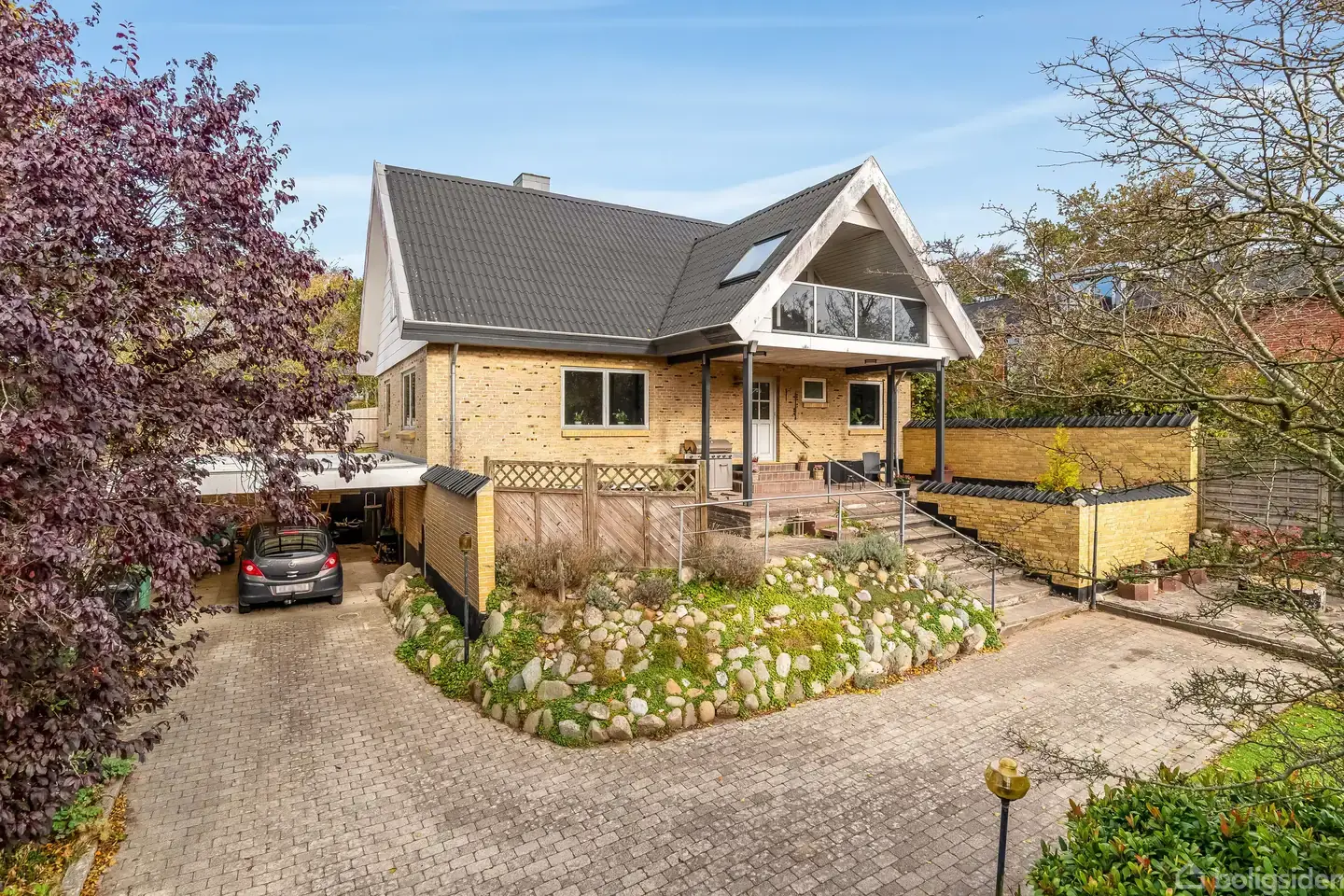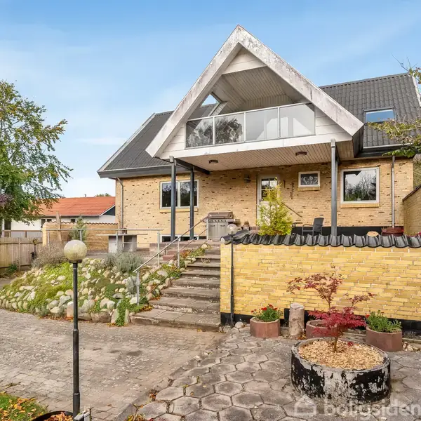 På en rolig og let tilbagetrukket grund i Bremdal venter denne rummelige og velholdte villa på hele 182 kvadratmeter – perfekt til familien, der drømmer om masser af plads både inde og ude. Boligen er opført i klassiske, gule mursten og præsenterer sig med et karakterfuldt, højrejsende saddeltag med store gavludhæng og overdækket indgangsparti. Den let hævede beliggenhed giver et flot vue over området, og fra den brede, velanlagte indkørsel er der nem adgang til både carport og værksted i undere