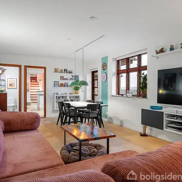Denne attraktive adresse i Vejle midtby byder både på skov i baghaven og kun ti minutters gang ned til Vejle gågade, på en lukket villavej med cykelsti direkte til Uhrhøj. Fra boligen har man både indløb, institutioner samt skole indenfor overskuelig afstand. Der bydes velkommen i entréen med praktiske løsninger til sko og overtøj. Fra entréen er der adgang til det første af husets tre værelser. Værelset er stort og lyst med flot lysindfald fra det store vinduesparti. Fra værelset er der adgang