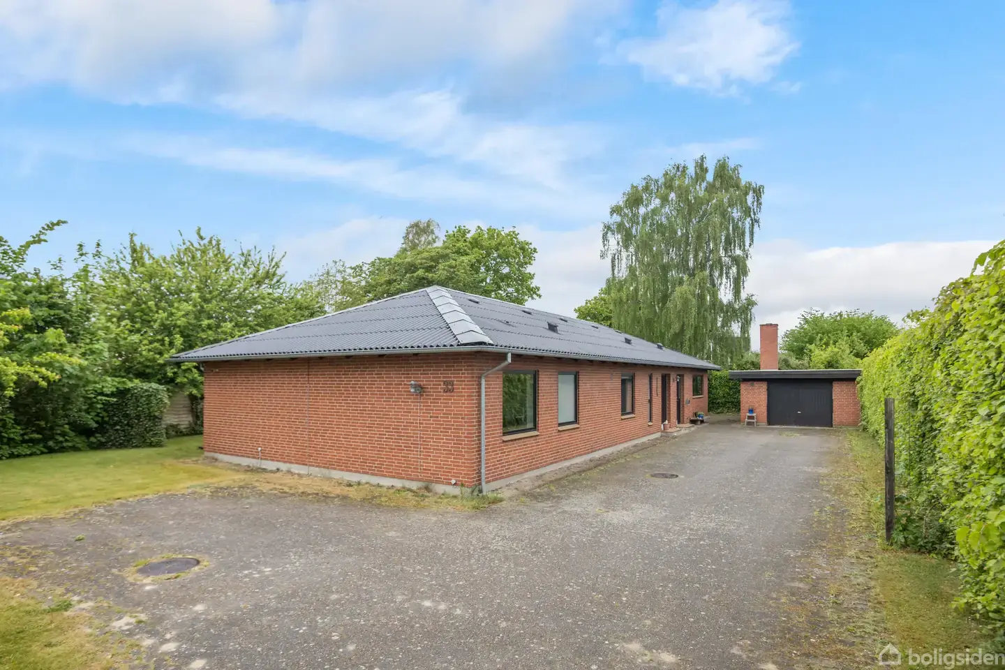 Med sine 216 m2 i ét plan er denne villa mere end almindeligt rummelig, og når I endda kan forvente flotte opdateringer, velvalgte retrodetaljer og en skøn beliggenhed i Gandrup, er der ikke meget mere at bede om. Det skulle da lige være et skønt udemiljø, som her serveres i form af den sydvestvendte terrasse, der ligger dejligt i læ i krogen af huset. Her er tale om en meget velholdt og præsentabel rødstensvilla fra 1971, som i 2022 blev opdateret med nyt tag, nye vinduer og nye døre. I samme