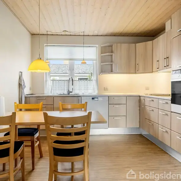 Åbent hus med tilmeldingskrav 2/2 - klik på billede - Velbeliggende 1-plansvilla med fjordkig og masser af muligheder På en af Hals’ mest attraktive adresser finder du denne velholdte villa på Gl. Skansevej 11 – et gulstenshus fra 1968 på 124 m² med et skønt fjordkig fra stuen. Huset fremstår solidt, lyst og rummeligt med en god planløsning, og er løbende moderniseret, herunder både køkken og bryggers blev fornyet. Her er et hjem, der fremstår indflytningsklart, men samtidig giver mulighed for at sætte eget præg. Indretningen byder på to lyse stuer med store vinduespartier og udgang til en sydvendt, overdækket terrasse – et perfekt sted at nyde solen og udsigten. Køkkenet er funktionelt og tidløst, og i forlængelse heraf ligger et rummeligt bryggers med god skabsplads. Derudover finder du to gode værelser og et badeværelse med bruseniche. Oprindeligt havde huset fire værelser, så der er nem mulighed for at etablere et ekstra rum, hvis behovet opstår. Grunden på 727 m² er velanlagt og nem at holde. Her får du både en god garage, praktisk skur og et hyggeligt, isoleret legehus. Haven vender mod syd og indbyder til både afslapning og udeliv. Beliggenheden er i særklasse – tæt på alt, hvad Hals har at byde på. Du bor i gåafstand til købmand, skole, sportsfaciliteter, golfklub og det charmerende havnemiljø ved Limfjorden. Den smukke natur, stranden og Skansen ligger lige om hjørnet, og du når Aalborg på blot 30 minutter. Gl. Skansevej 11 er en sjælden mulighed for at få en velbeliggende, klassisk villa med fjordkig, ro og nærhed til både byliv og natur.