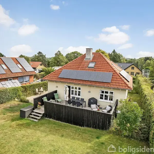 Åbent hus med tilmeldingskrav 2/2 - klik på billede - På Gl Slotsvej 7 er familievenlighed nøgleordet – for både huset, haven og det attraktive nærområde i skønne Strib. Tag, vinduer og døre er fra 2006, så på adressen møder I en charmerende bungalow i flot, indflytningsklar stand. Derudover suppleres boligens 148 m² af en anvendelig underetage på 100 m², så i det store hele får I masser af plads at brede jer på. Ved første øjekast præsenterer ejendommen fra 1955 sig nydeligt med lyse murfacader, pyramidetag i røde tegl og hvide dannebrogsvinduer, som tilsammen giver et klassisk udtryk. Solpaneler på taget er et moderne touch, og med en normeret effektiv giver de tilmed et godt supplement til energiøkonomien. Indenfor fordeler boligens mange etagemeter sig over tre plan. Stueplan er indrettet med et enkelt værelse, mens opholdsrummene består af to stuer en suite og et køkken, der blev renoveret i 2020. Her er moderne inventar med charme, og de gråtonede fyldningslåger samt de fine klinker som stænkpaneler er flotte detaljer. Desuden kan køkken-alrummet sagtens indrettes med spisebord, og ligesom den ene stue har rummet udgang til haven. Til gengæld udgør førstesalen en separat værelsesafdeling, hvor de to værelser begge er meget store og har loft til kip. Endelig har I underetagen, der er i en anvendelig kvalitet og byder på fire disponible rum, som kan bruges til lidt af hvert. Ikke mindst får I to badeværelser – ét i stueplan og ét i underetagen – og begge har indlagt gulvvarme. Det store familiebadeværelse i underetagen blev endda renoveret i 2020, og her får I både vaskefaciliteter, stor bruseniche og et lækkert badekar. Haven er nem at holde, og den er anlagt med tanke på, at der skal være plads til leg. Der er plads til både havemøbler og grill, og fra henholdsvis køkkenet og stuen har I udgang til terrasser på begge sider af huset, så haven er nem at inddrage som en del af leverummet i sommerhalvåret. Måske er det bedste ved haven, at der er havelåge direkte til skolens parkeringsplads ved siden af. Så bliver det simpelthen ikke nemmere at få børnene afsted om morgenen. I har også idrætshallen lige ved siden af, og med svømmehal og Strib Nordstrand i nærheden er der rig mulighed for et aktivt liv. Der er desuden flere dagligvarebutikker i byen, og pendlerforholdene er fremragende med nem adgang til motorvejen. Kontakt os for en fremvisning.