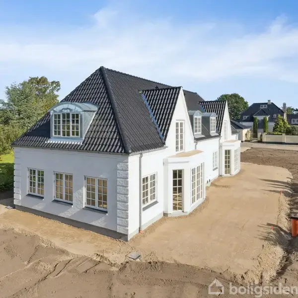 KOM OG SE DE FÆRDIGBYGGEDE HUSE TIL ÅBENT HUS PÅ SØNDAG I det eftertragtede Gl. Strandvejskvarter i Humlebæk udbydes nu et nyopført og gennemført kvalitetsbyggeri bestående af to arkitekttegnede halve dobbelthuse. Hver bolig er opført i kvalitetsmaterialer og har selvstændig indkørsel – den ene fra Kystvej og den anden fra Gl. Strandvej. Begge huse sælges uden bopælspligt. Boligerne er indrettet med lyse, højloftede rum og har et moderne og funktionelt planløsningsdesign. Hver bolig indeholder 4 værelser, to badeværelser, stuer en suite samt et rummeligt køkken/alrum med glaskarnap. Der er gulvvarme i hele boligen, opvarmet via energieffektiv jordvarme. Byggeriet opfylder kravene til Energimærke A2020. Til hver bolig hører privat brugsret til en grund på ca. 600 m². Der er mulighed for tilkøb af carport eller garageanlæg. Projektet er beliggende i et fredeligt og naturskønt område, fjernt fra trafikstøj, men stadig med kort afstand til både indkøb, skoler, station, Øresund, Gl. Humlebæk Havn og kulturelle tilbud som Louisiana. Baglandet byder på rekreative muligheder ved Krogerup og Årstiderne.