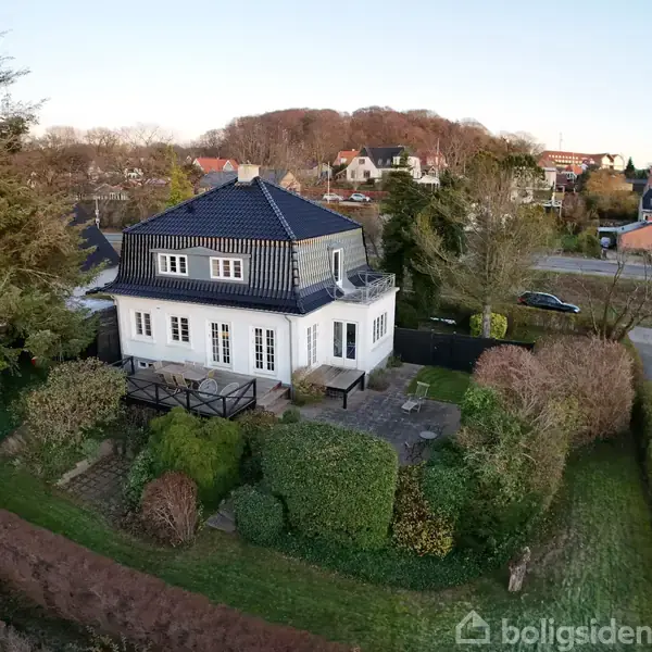 Yderst præsentabel og flot istandsat patriciervilla på mondæn adresseOpført i 1929 med mansardtag, pudsede facader og smukke detaljer. Fra såvel ejendommen, som fra terrasse opleves en flot udsigt over Lillebælt. Over de senere år er ejendommen omfattende istandsat og med stor respekt for den oprindelig stil og atmosfære. Til villaen hører foruden carport fra 2004 direkte ved huset også en garage til, som forefindes nede ved kysten. Indretning: Indbydende indgangsparti med adgang til hall. Gæstetoilet. Flot køkken/alrum med udgang til terrasse og i direkte forbindelse med stor opholdsstue. Yderligere en meget smagfuld stue med smagfuld, integreret bogreal. Stuerne prydes bl.a. af smukke pitch pine gulve, stuk og rosetter. 1. salen har, qua ejendommens mansard tag, fuld udnyttelse af samtlige ydervægge og fremstår således meget anvendelig. Indrettet med to store værelser, et flot badeværelse med brus og yderligere et stort soveværelse med direkte udgang til terrasse. Kælderen fremstår i meget anvendelig stand. 4x Duka ventilationsanlæg sørger for indeklimaet og de flotte klinkegulve skaber stemning af alm. beboelse. Kælderen rummer bl.a. bryggers, depot, badeværelse samt disponibelt rum. Alle i fin stand. Haven er naturligvis flot opvokset og rummer foruden plæne, bede og træer også en stor, fin terrasse, hvorfor solnedgangene over Lillebælt særligt bør fremhæves. Velkommen til Gl Strandvej 73 i Middelfart