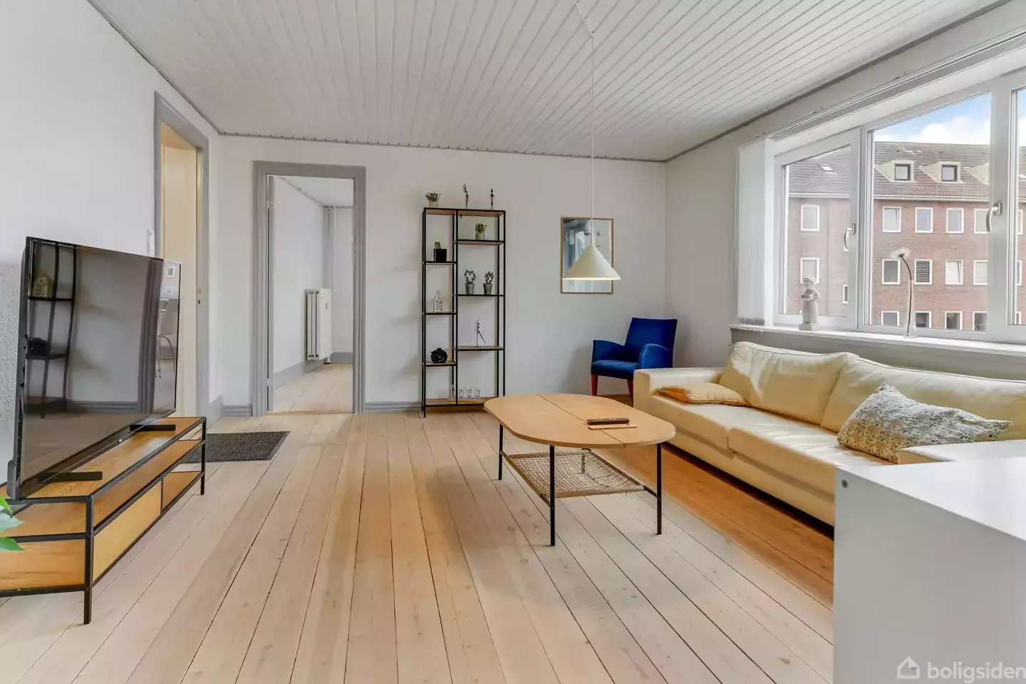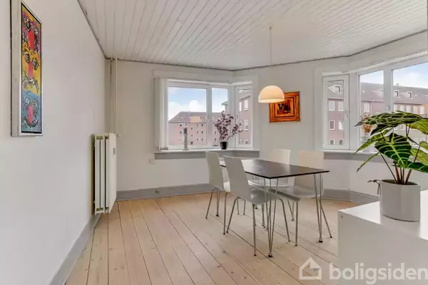 God delevenlig og meget lys hjørnelejlighed med stor stue og 3-lags vinduer!