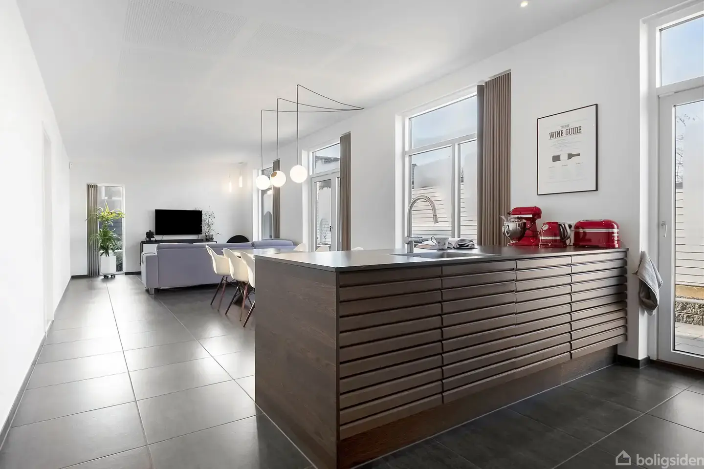 Åbent hus med tilmeldingskrav 2/2 - klik på billede - På Gl. Virringvej 5B får I en indflytningsklar og gennemført etplansvilla med et moderne, stilrent udtryk – både ude og inde. Her er der tænkt over linjerne, materialerne og hverdagsfunktionaliteten, og resultatet er en bolig, der opleves lys, rolig og utrolig nem at gå til. Boligens naturlige samlingspunkt er det store opholdsrum, hvor køkken-alrum og stue ligger i åben forbindelse. Det eksklusive køkken er indrettet med en køkkenø med flotte træfronter, god bordplads og barplads, mens de hvide, integrerede elementer giver et rent og tidløst udtryk. De store klinker og akustiklofter understreger den moderne arkitektur og giver en flot, ensartet helhed. De høje vinduespartier og flere udgange til terrasserne trækker lyset helt ind og binder inde- og udeliv naturligt sammen. Planløsningen er gennemtænkt med en tydelig opdeling mellem opholdsafdeling og værelser. En lang, lys fordelingsgang med spots leder til flere gode værelser, der kan bruges som børneværelser, kontor eller hobbyrum, og samtidig får I en regulær soveværelsesafdeling med skabsvæg og direkte adgang til eget badeværelse. Derudover er der endnu et badeværelse, så hverdagen glider let, når familien skal ud ad døren, eller når der er gæster. Entréen tager pænt imod, og bryggerset ligger praktisk placeret med god skabs- og bordplads samt plads til vaskefaciliteter – et rum, der fungerer i en travl hverdag og samtidig matcher boligens øvrige, enkle stil. Ude får I flere solkroge og et skønt, afskærmet gårdhavemiljø med god læ og minimal vedligeholdelse, oplagt til både loungemøbler, grill og lange sommeraftener. Til boligen hører desuden carport, og der er tænkt praktisk i hverdagen med gode parkeringsforhold og fine opbevaringsmuligheder. Beliggenheden placerer jer i attraktive Gram med kort afstand til Skanderborg og en hverdag, der hænger nemt sammen – særligt for børnefamilien. Her er trygge stisystemer til både skole og institution, og I bor tæt på grønne områder, fællesarealer og legepladser, hvor der er god plads til udeliv. Samtidig er der gode indkøbsmuligheder i nærområdet, og med motorvejsnettet E45 inden for kort rækkevidde kommer I let videre mod både Aarhus og Horsens – en fleksibel hverdag for pendleren. Vi glæder os til at vise denne dejlige bolig frem. Kontakt EDC på 86 52 35 00 Tjek Boliglån https://www.raadtilpenge.dk/Gode-raad/boliglaan/landingsside
