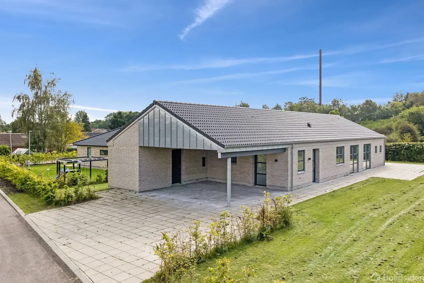 Velkommen til drømmevillaenDrømmer du om et hjem, hvor moderne arkitektur, funktionalitet og atmosfære går hånd i hånd? Denne villa fra 2022 folder sig ud på 163 m² i ét plan og ligger på en rummelig grund på 807 m². Allerede ved ankomsten fornemmer man den rolige stemning, som de grønne arealer og de åbne rammer skaber, mens det elegante facadeudtryk og carporten fuldender indtrykket af et hjem med stil og overskud. Som noget særligt har villaen aldrig været beboet – du bliver den første til at